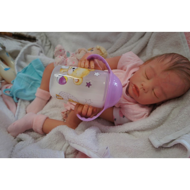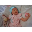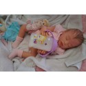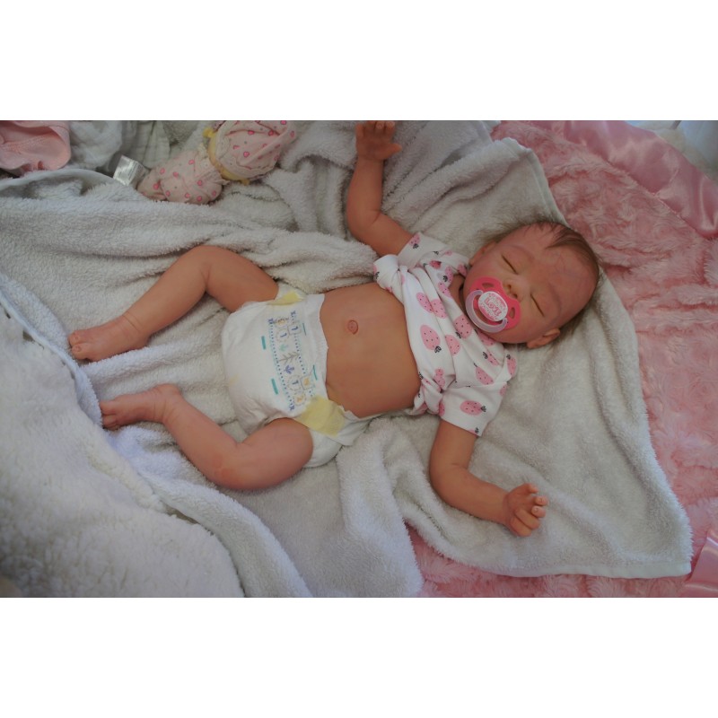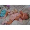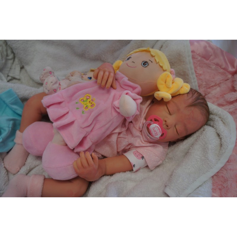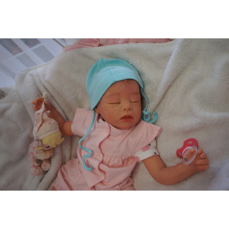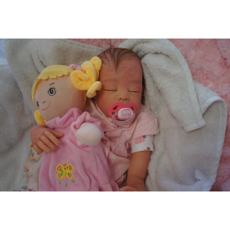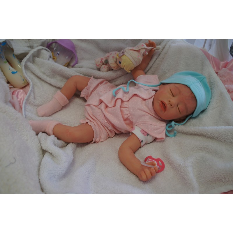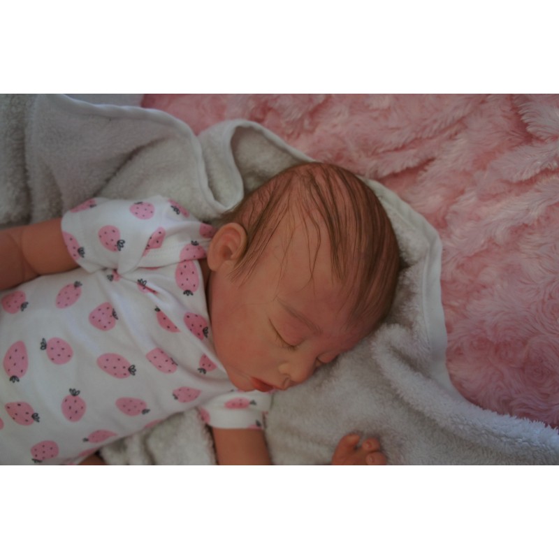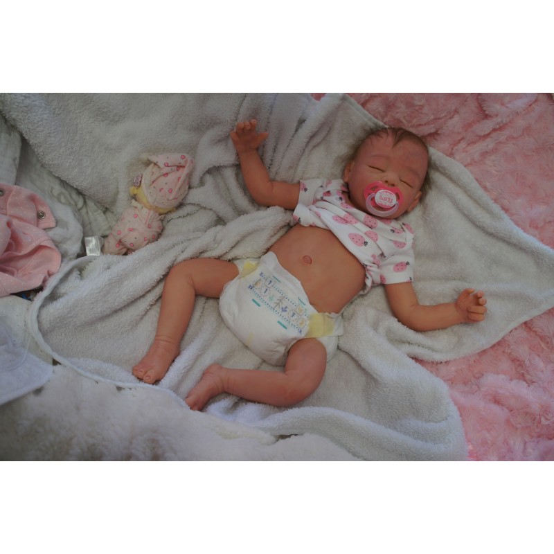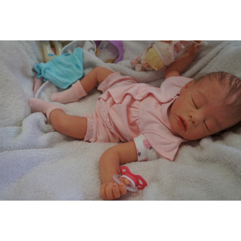 Ich wurde mit hochwertigen Farben in Real Effekt Technik eingefärbt. Mit Genesis Farben habe ich dieses alles noch mal zum Schluss gut versiegelt und eingebrannt. Diese wurde in mehreren Schichten aufgetragen, sodass ein sehr realistisches Hautbild entstanden ist. (Wisch- und Wasserfest kein Abblättern mgl). Feinste Schattierungen und leichte Betonung der Speckfalten wurden bei mir auch nicht vergessen. Leichte Äderchen an Händen, Armen, Füßchen, Beinen, Ohren, Kopf und Gesicht lassen mich wie ein echtes Baby aussehen. Jedes Fältchen an mir wurde einzeln betont. Zarte Augenbrauen wurden mir auch gegeben. Meine Nase wurde geöffnet und hinterlegt, sodass ich jetzt auch gut Luft bekomme. Auch zarte Befeuchtung der Augen, Mund und Nase lassen mich noch echter wirken.