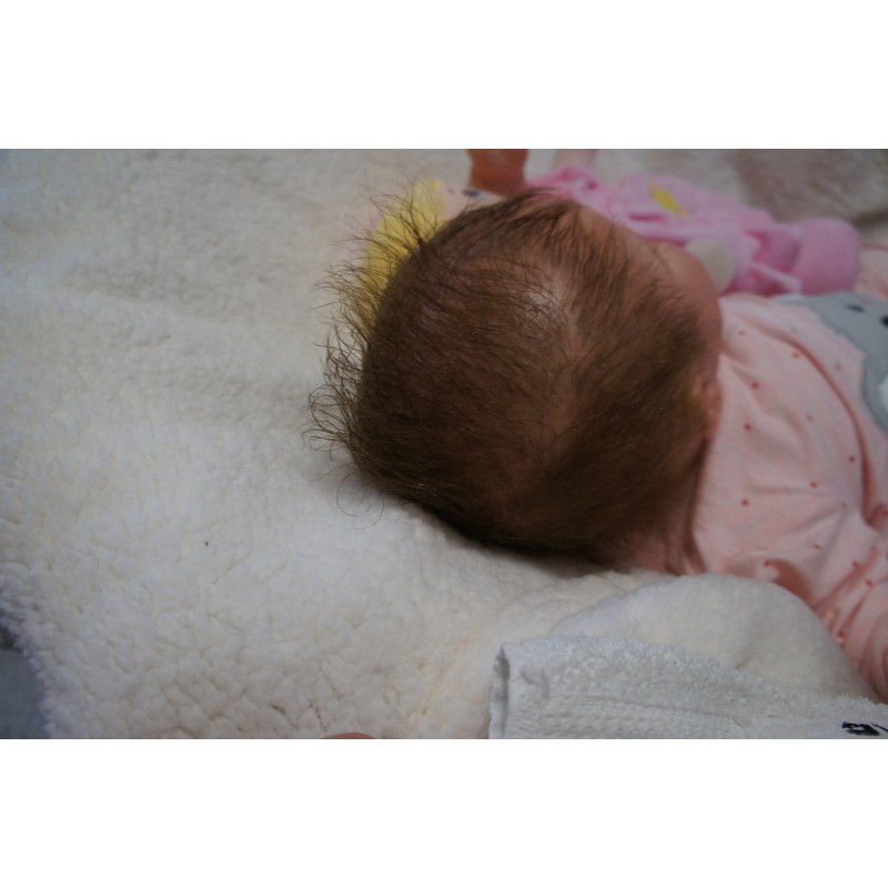 Meine Haare sind mittelbraun und im micro Rooting Verfahren einzeln eingepflanzt (Feinstes Mohair ). Anschließend natürlich von innen versiegelt. Und nun kann man meine Haare kämmen und auch mal leicht waschen. Die passenden Wimpern habe ich auch dazu gerootet bekommen, das sieht jetzt richtig echt aus. Meine Finger- und Fußnägel wurden fein Pedi- und Manikürt und anschließend dauerhaft versiegelt. Zum Schluss bekam ich noch einen Magnetschnuller. Und ein Duftöl aufgetragen, jetzt riech ich auch noch wie ein echtes Baby.