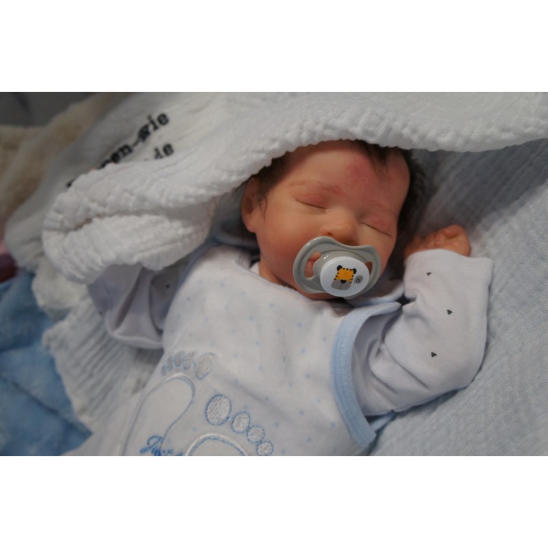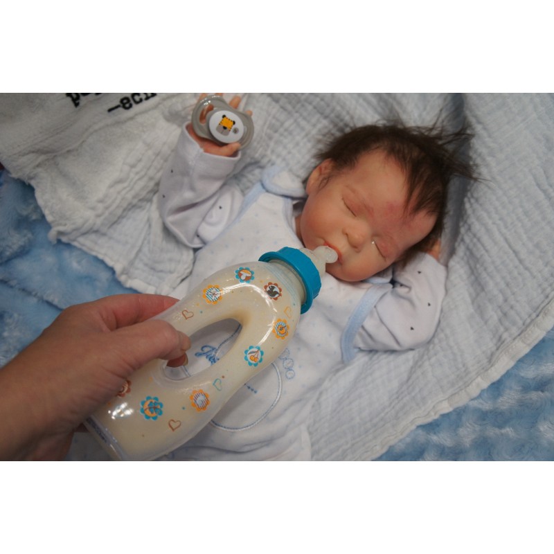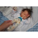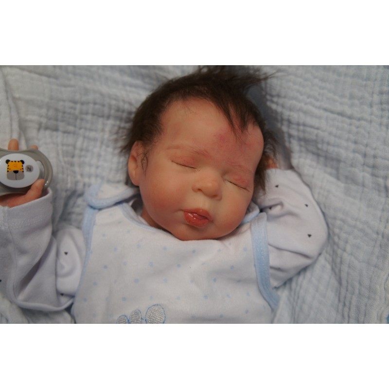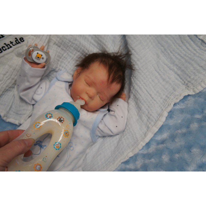 Meine Haare sind dunkelbraun und im micro Rooting Verfahren einzeln eingepflanzt (Feinstes Mohair ). Anschließend natürlich von innen versiegelt. Und nun kann man meine Haare kämmen und auch mal leicht waschen. Die passenden Wimpern habe ich auch dazu gerootet bekommen, das sieht jetzt richtig echt aus. Meine Finger- und Fußnägel wurden fein Pedi- und Manikürt und anschließend dauerhaft versiegelt. Zum Schluss bekam ich noch einen Magnetschnuller. Und ein Duftöl aufgetragen, jetzt riech ich auch noch wie ein echtes Baby.