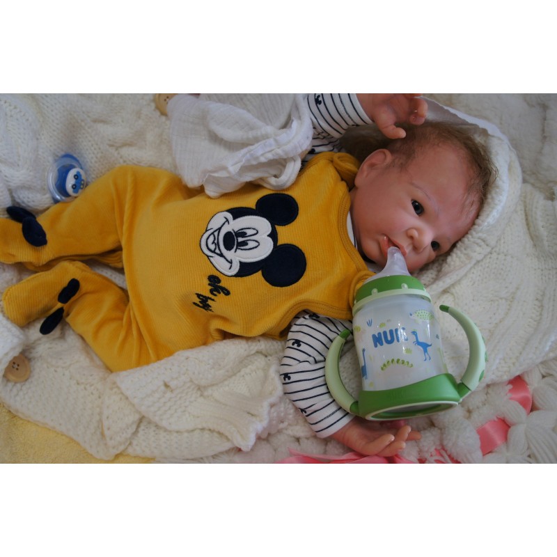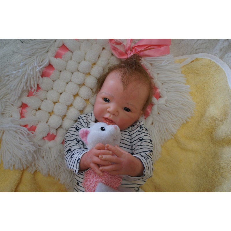 Meine Haare sind mittelbraun und im micro Rooting Verfahren einzeln eingepflanzt (Feinstes Mohair ). Anschließend natürlich von innen versiegelt. Und nun kann man meine Haare kämmen und auch mal leicht waschen. Die passenden Wimpern habe ich auch dazu gerootet bekommen, das sieht jetzt richtig echt aus. Meine Finger- und Fußnägel wurden fein Pedi- und Manikürt und anschließend dauerhaft versiegelt. Zum Schluss bekam ich noch einen Magnetschnuller. Und ein Duftöl aufgetragen, jetzt riech ich auch noch wie ein echtes Baby.