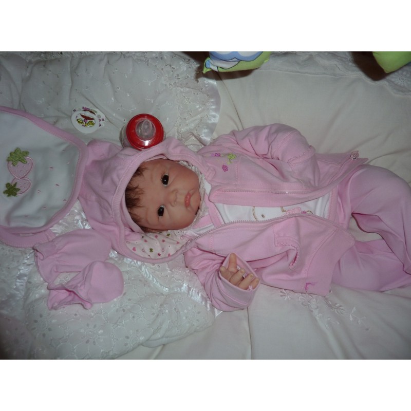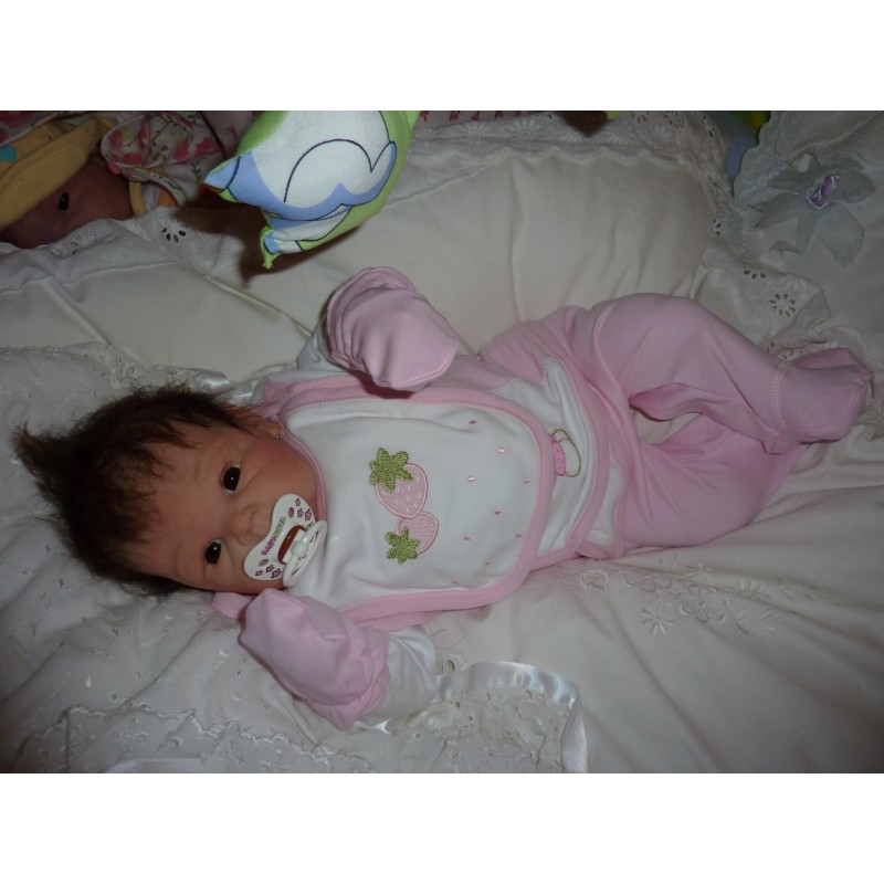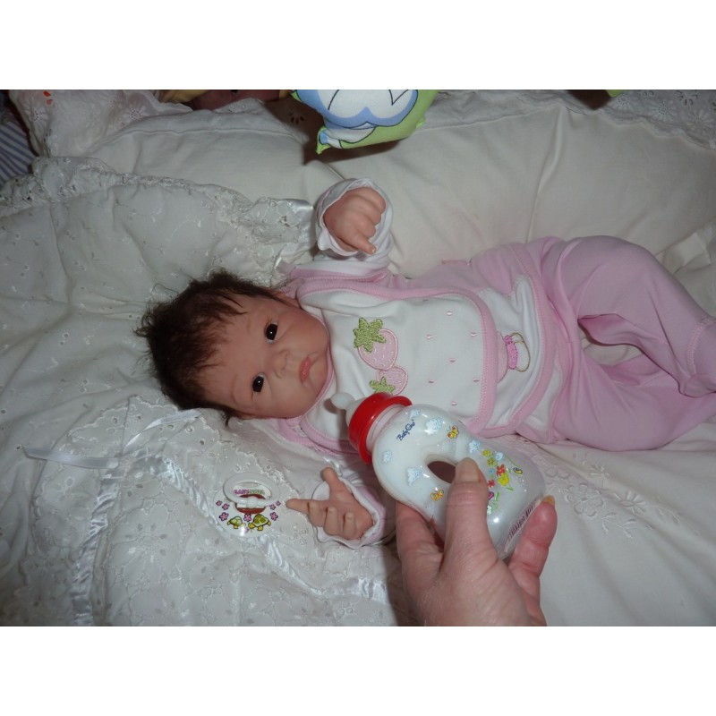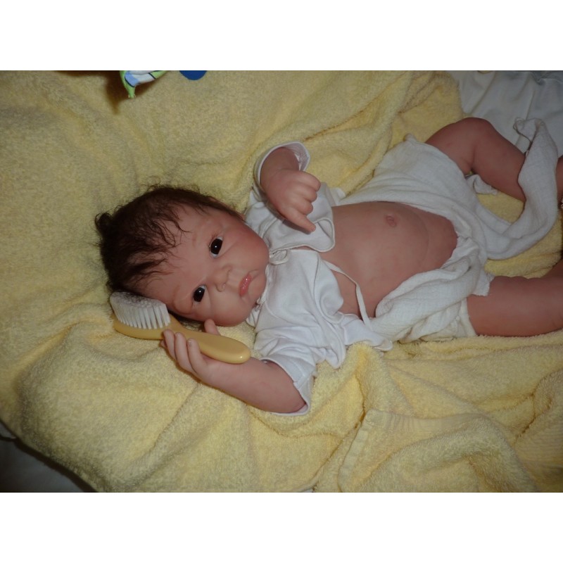 Meine Haare sind dunkelbraun und im micro Rooting Verfahren einzeln eingepflanzt (Feinstes Mohair ). Anschließend natürlich von innen versiegelt. Und nun kann man meine Haare kämmen und auch mal leicht waschen. Die passenden Wimpern habe ich auch dazu gerootet bekommen, das sieht jetzt richtig echt aus. Meine Finger- und Fußnägel wurden fein Pedi- und Manikürt und anschließend dauerhaft versiegelt. Zum Schluss bekam ich noch einen Magnetschnuller. Und ein Duftöl aufgetragen, jetzt riech ich auch noch wie ein echtes Baby.