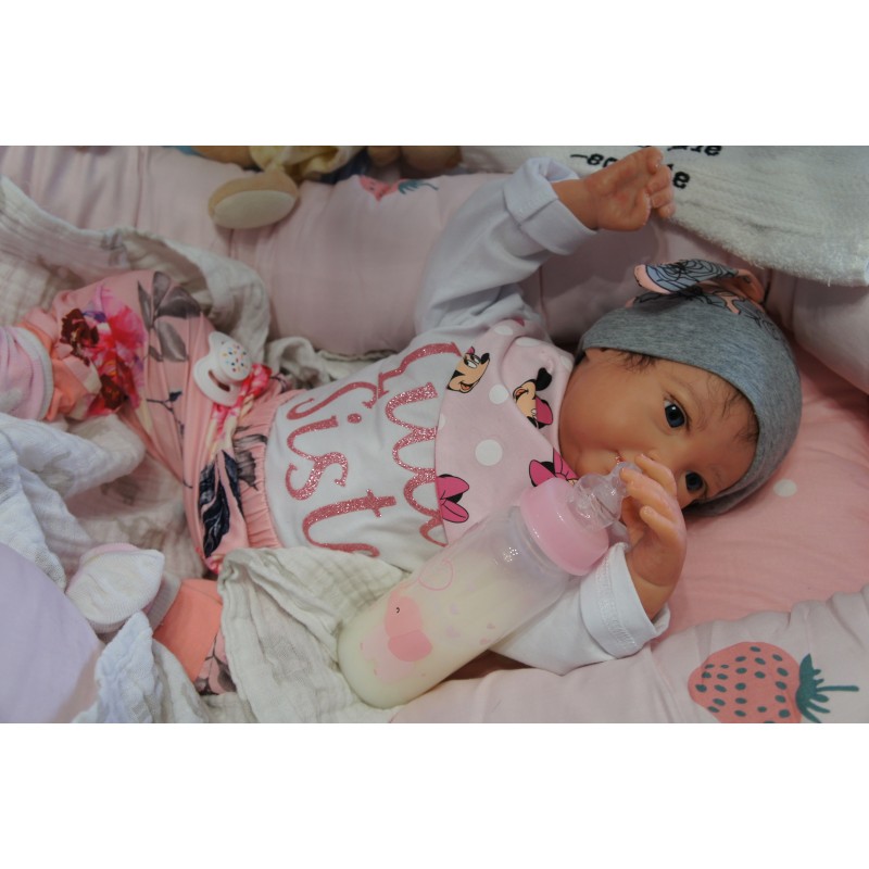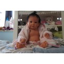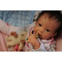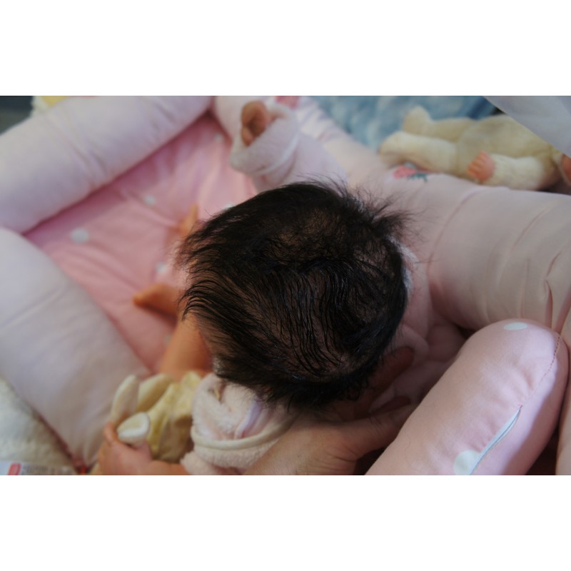 Meine Haare sind Schwarz und im micro Rooting Verfahren einzeln eingepflanzt (Feinstes Mohair ). Anschließend natürlich von innen versiegelt. Und nun kann man meine Haare kämmen und auch mal leicht waschen. Die passenden Wimpern habe ich auch dazu gerootet bekommen, das sieht jetzt richtig echt aus. Meine Finger- und Fußnägel wurden fein Pedi- und Manikürt und anschließend dauerhaft versiegelt. Zum Schluss bekam ich noch einen Magnetschnuller. Und ein Duftöl aufgetragen, jetzt riech ich auch noch wie ein echtes Baby.