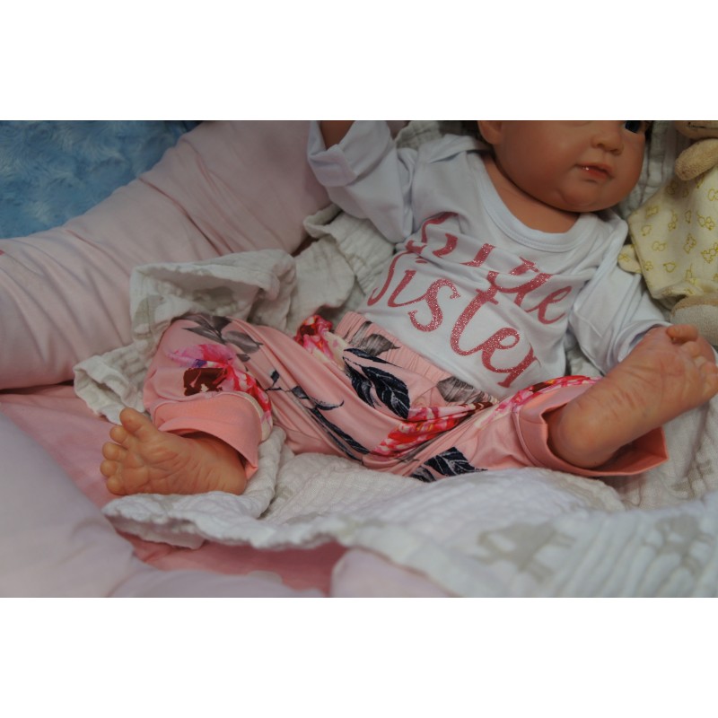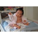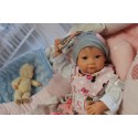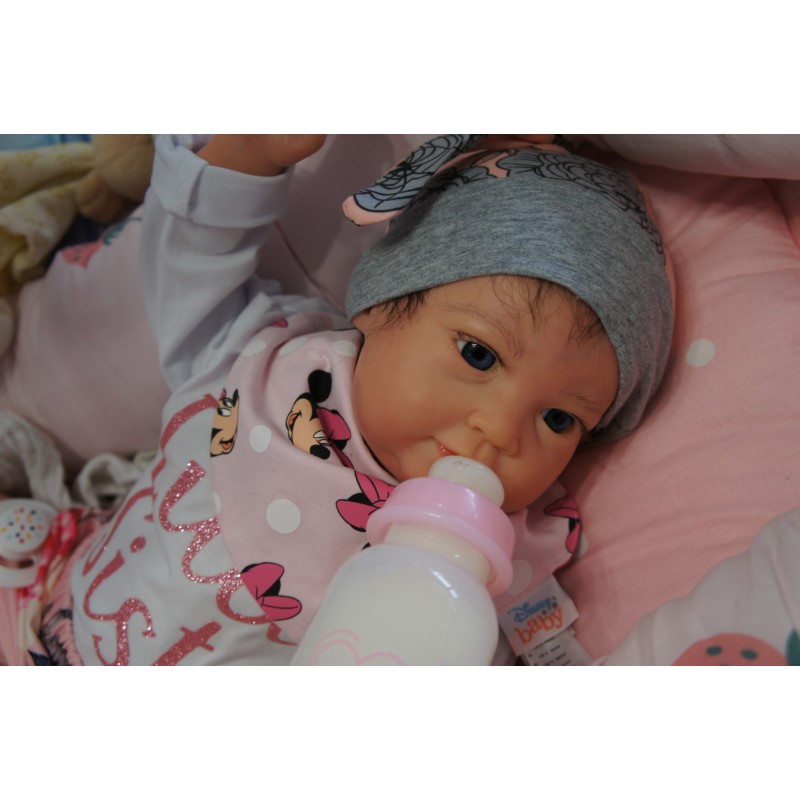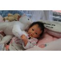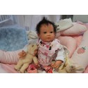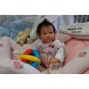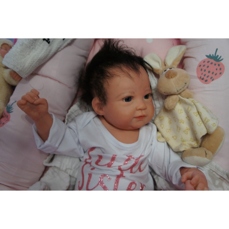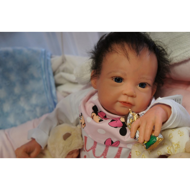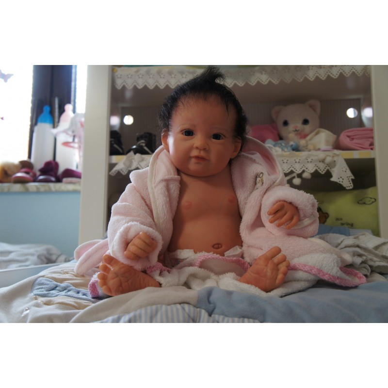 Ich wurde mit hochwertigen Farben in Real Effekt Technik eingefärbt. Mit Genesis Farben habe ich dieses alles noch mal zum Schluss gut versiegelt und eingebrannt. Diese wurde in mehreren Schichten aufgetragen, sodass ein sehr realistisches Hautbild entstanden ist. (Wisch- und Wasserfest kein Abblättern mgl). Feinste Schattierungen und leichte Betonung der Speckfalten wurden bei mir auch nicht vergessen. Leichte Äderchen an Händen, Armen, Füßchen, Beinen, Ohren, Kopf und Gesicht lassen mich wie ein echtes Baby aussehen. Jedes Fältchen an mir wurde einzeln betont. Zarte Augenbrauen wurden mir auch gegeben. Meine Nase wurde geöffnet und hinterlegt, sodass ich jetzt auch gut Luft bekomme. Auch zarte Befeuchtung der Augen, Mund und Nase lassen mich noch echter wirken.