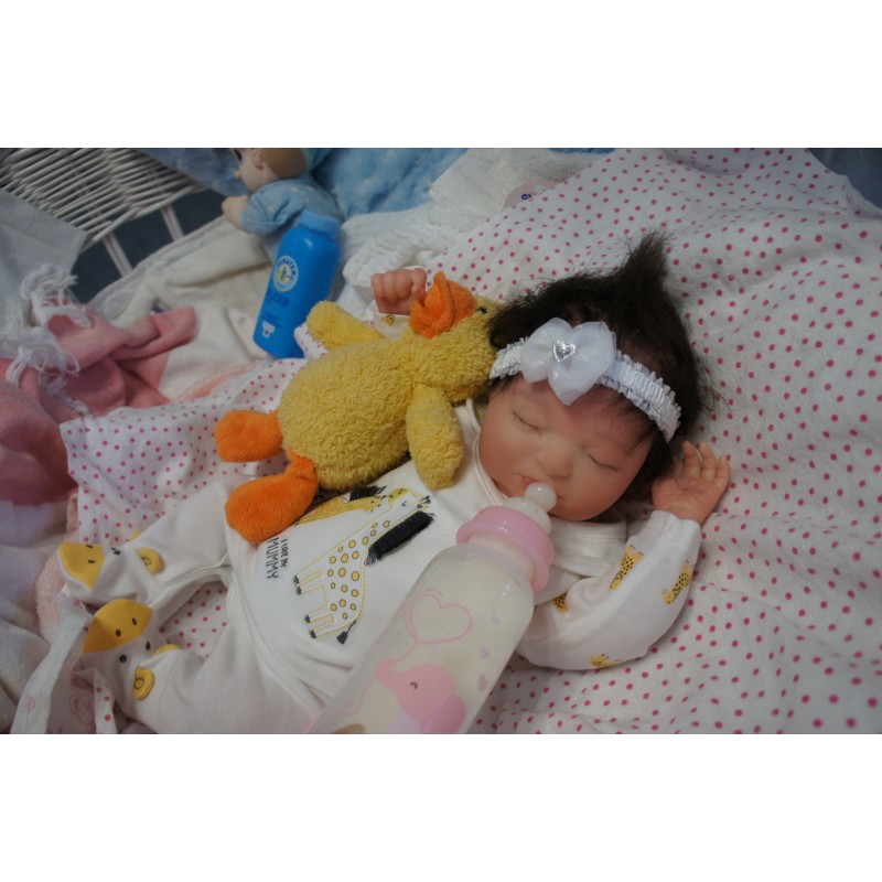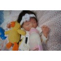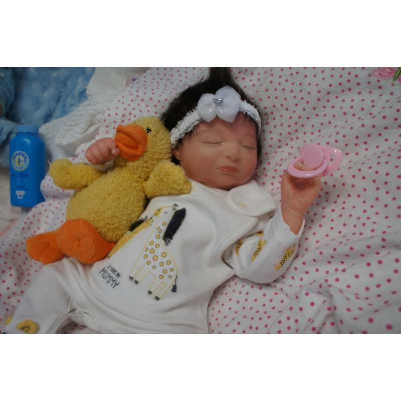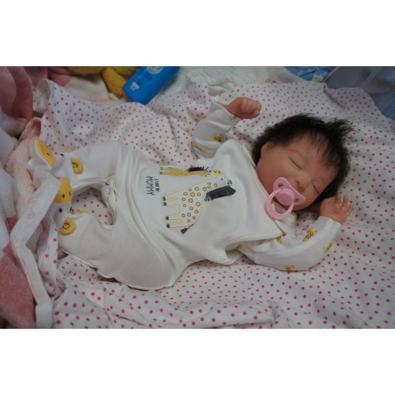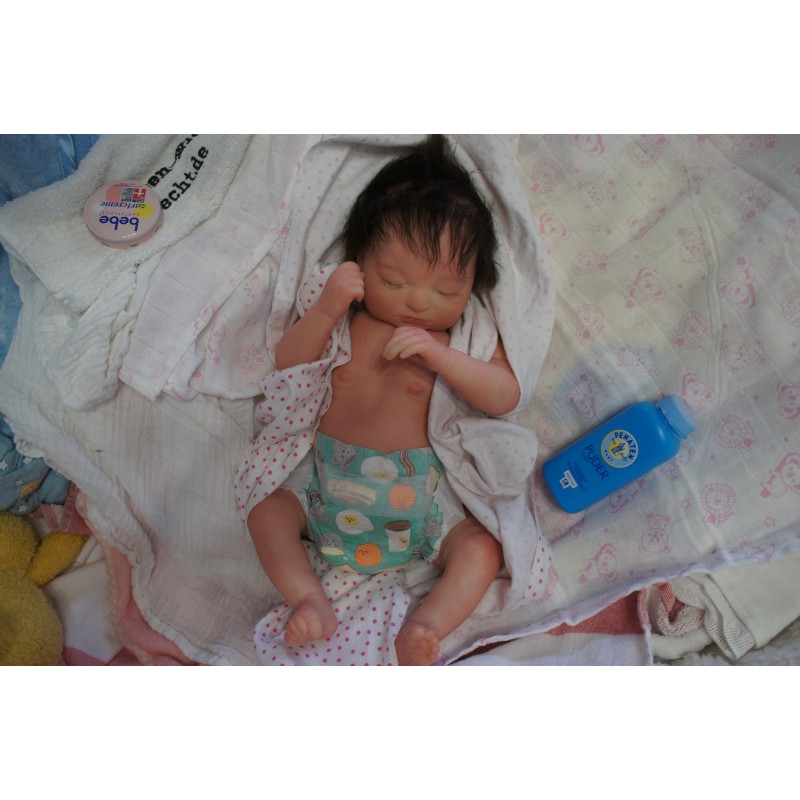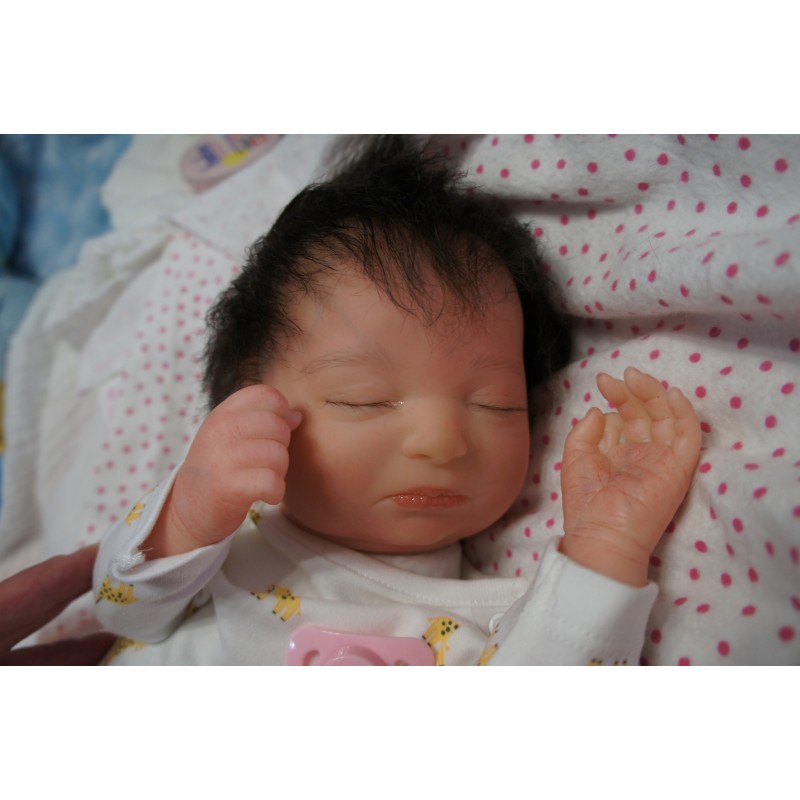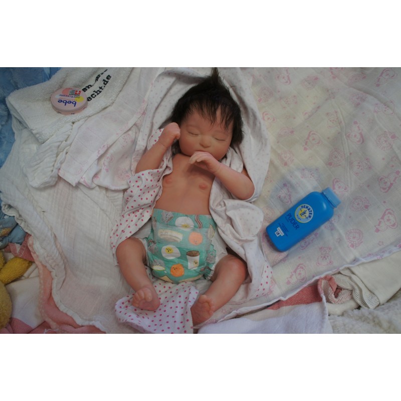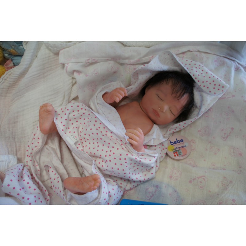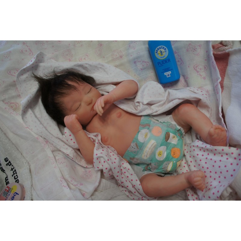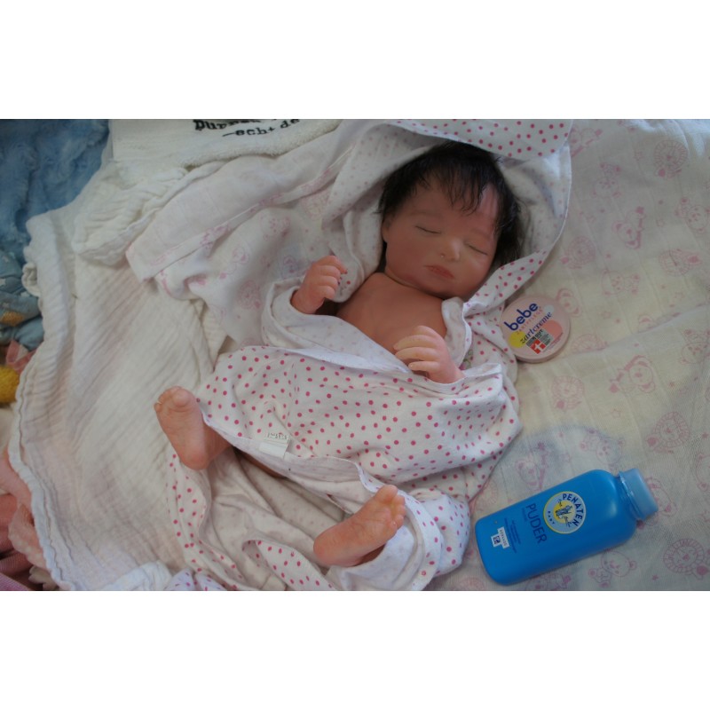 Sie ist aus dem Realborn Bausatz Phineas Sleeping. Ein Realborn wurde von einem echten Baby abgescannt und im 3D verfahren reproduziert.