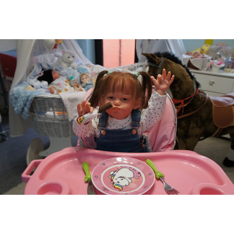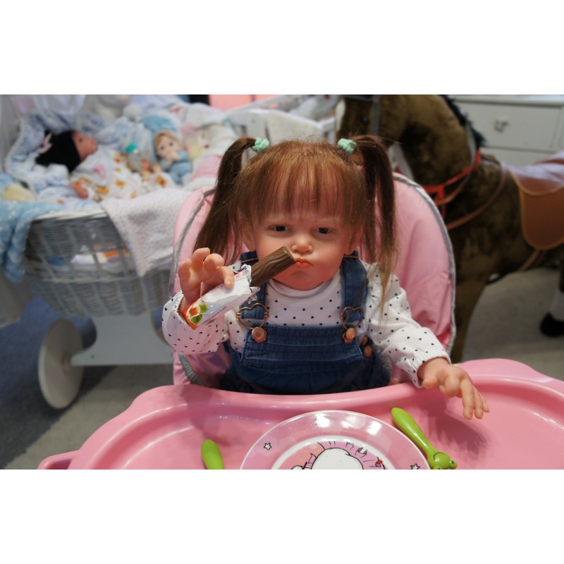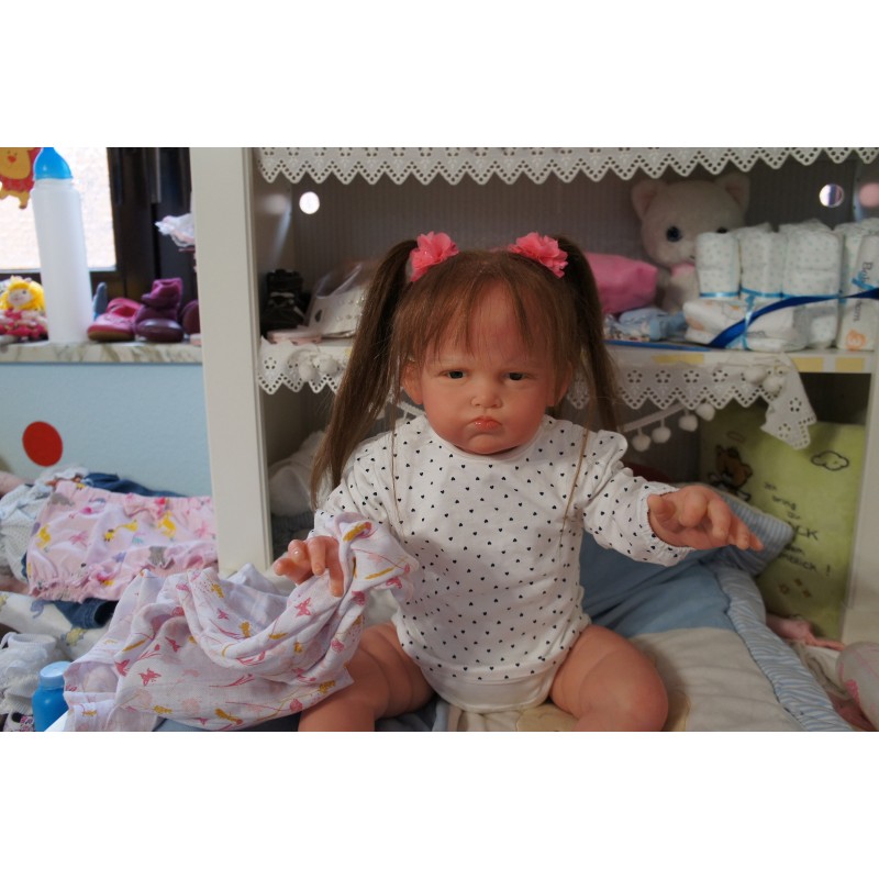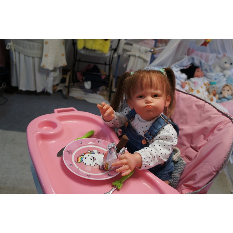 Meine Haare sind Dunkelbraun und im micro Rooting Verfahren einzeln eingepflanzt (ECHTHAAR ). Anschließend natürlich von innen versiegelt. Und nun kann man meine Haare kämmen und auch mal leicht waschen. Die passenden Wimpern habe ich auch dazu gerootet bekommen, das sieht jetzt richtig echt aus. Meine Finger- und Fußnägel wurden fein Pedi- und Manikürt und anschließend dauerhaft versiegelt. Zum Schluss bekam ich noch einen Magnetschnuller. Und ein Duftöl aufgetragen, jetzt riech ich auch noch wie ein echtes Baby.