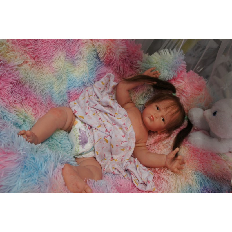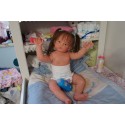 Ich wurde mit hochwertigen Farben in Real Effekt Technik eingefärbt. Mit Genesis Farben habe ich dieses alles noch mal zum Schluss gut versiegelt und eingebrannt. Diese wurde in mehreren Schichten aufgetragen, sodass ein sehr realistisches Hautbild entstanden ist. (Wisch- und Wasserfest kein Abblättern mgl). Feinste Schattierungen und leichte Betonung der Speckfalten wurden bei mir auch nicht vergessen. Leichte Äderchen an Händen, Armen, Füßchen, Beinen, Ohren, Kopf und Gesicht lassen mich wie ein echtes Baby aussehen. Jedes Fältchen an mir wurde einzeln betont. Zarte Augenbrauen wurden mir auch gegeben. Meine Nase wurde geöffnet und hinterlegt, sodass ich jetzt auch gut Luft bekomme. Auch zarte Befeuchtung der Augen, Mund und Nase lassen mich noch echter wirken.