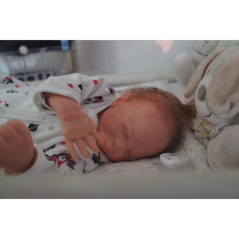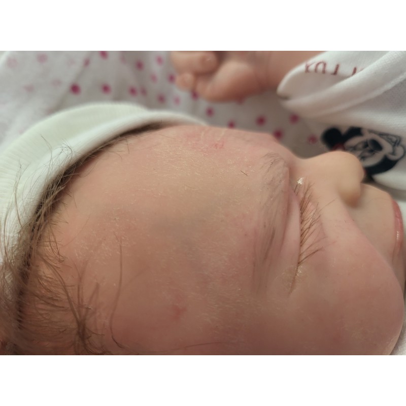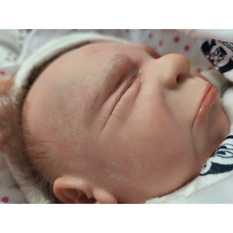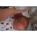 Erstmals haben wir hier feines Lanugo Haar im Gesicht verwendet, wie es ein echtes frühchen hat.