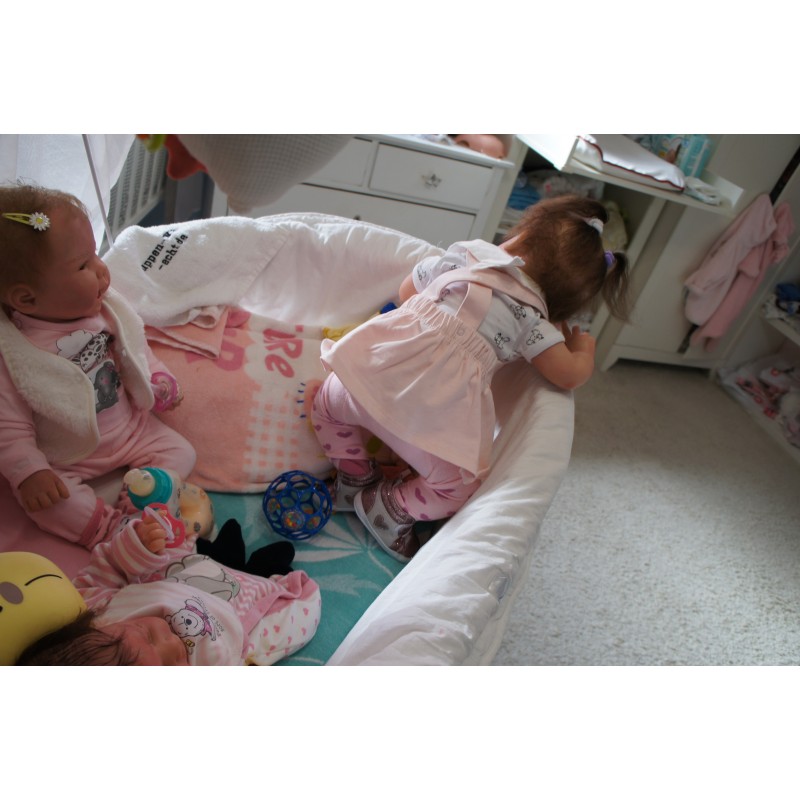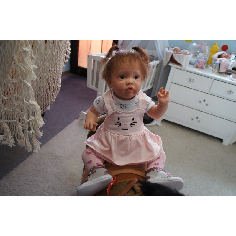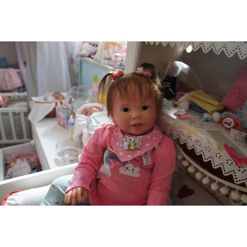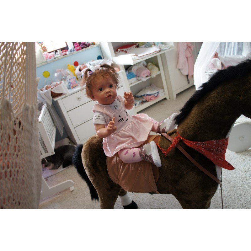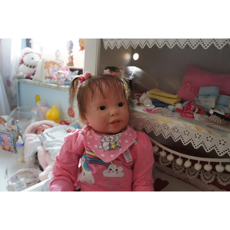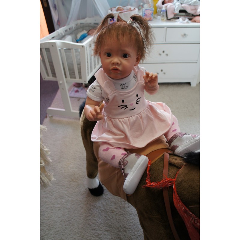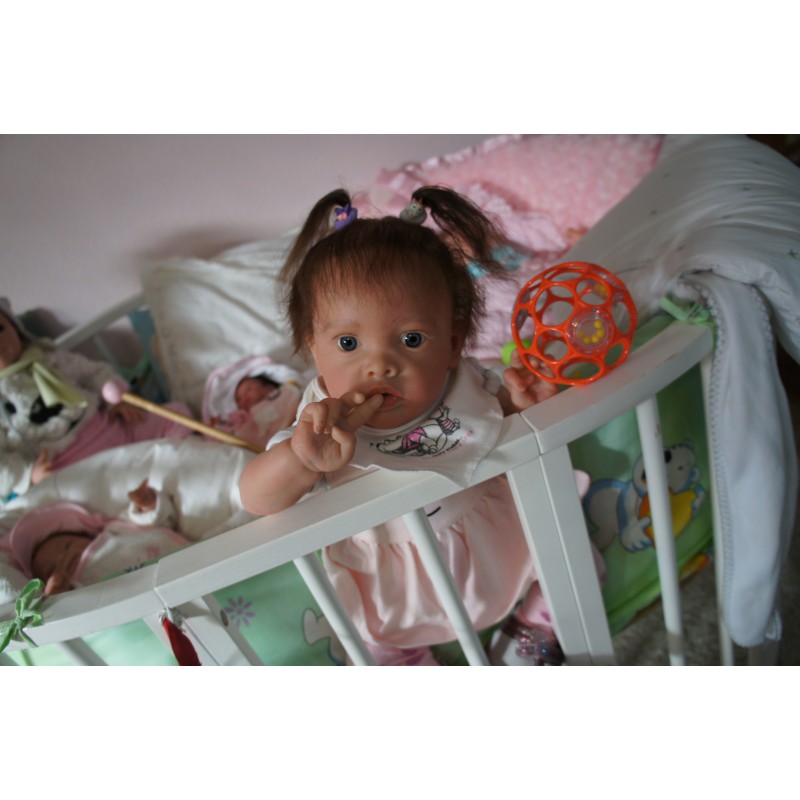 Meine Haare sind Mocca und im micro Rooting Verfahren einzeln eingepflanzt (Feinstes "Babyfluff" Mohair ). Anschließend natürlich von innen versiegelt. Und nun kann man meine Haare kämmen und auch mal leicht waschen. Die passenden Wimpern habe ich auch dazu gerootet bekommen, das sieht jetzt richtig echt aus. Meine Finger- und Fußnägel wurden fein Pedi- und Manikürt und anschließend dauerhaft versiegelt. Zum Schluss bekam ich noch einen Magnetschnuller. Und ein Duftöl aufgetragen, jetzt riech ich auch noch wie ein echtes Baby.