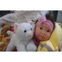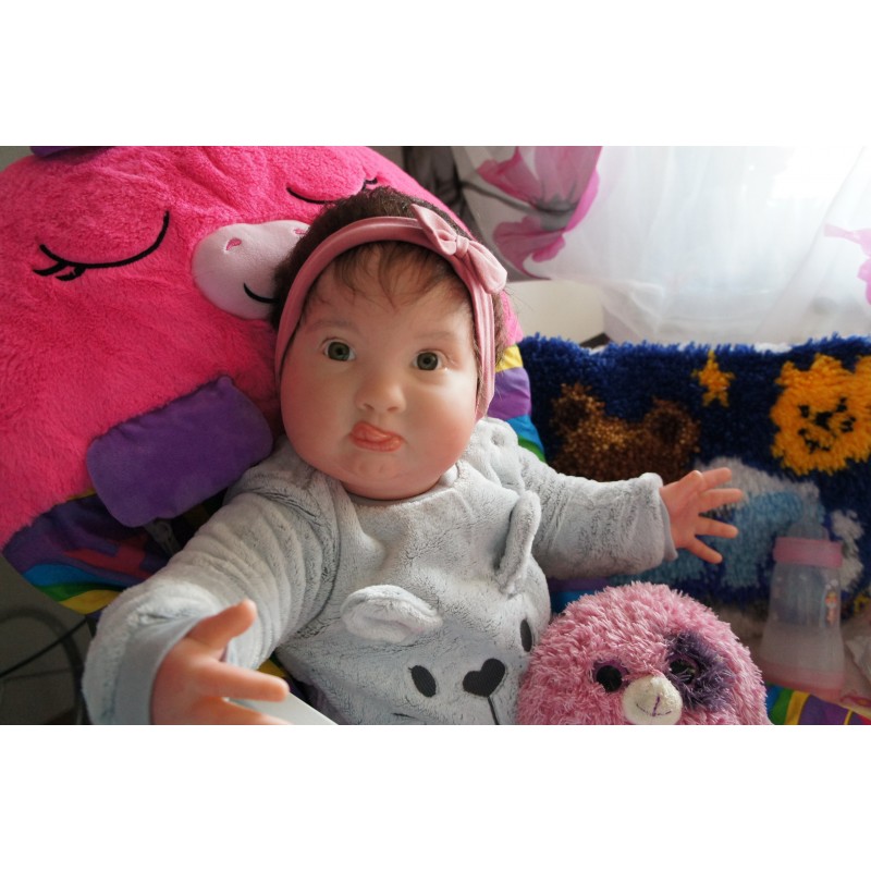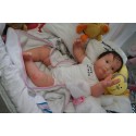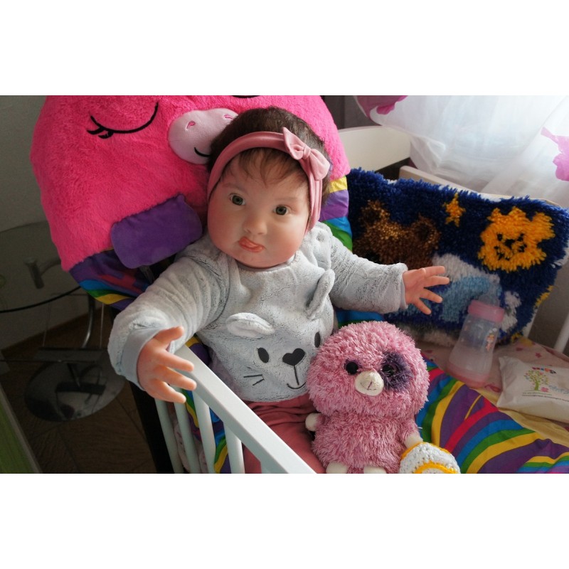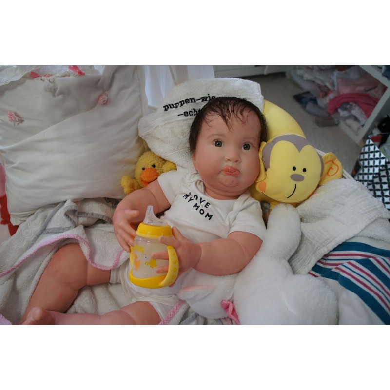 Meine Haare sind Schokoladenbraun und im micro Rooting Verfahren einzeln eingepflanzt (Feinstes Babyfluff Mohair ). Anschließend natürlich von innen versiegelt. Und nun kann man meine Haare kämmen und auch mal leicht waschen. Die passenden Wimpern habe ich auch dazu gerootet bekommen, das sieht jetzt richtig echt aus. Meine Finger- und Fußnägel wurden fein Pedi- und Manikürt und anschließend dauerhaft versiegelt. Zum Schluss bekam ich noch einen Magnetschnuller. Und ein Duftöl aufgetragen, jetzt riech ich auch noch wie ein echtes Baby.