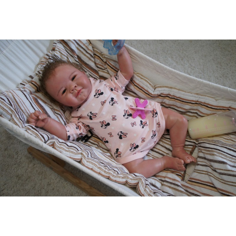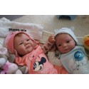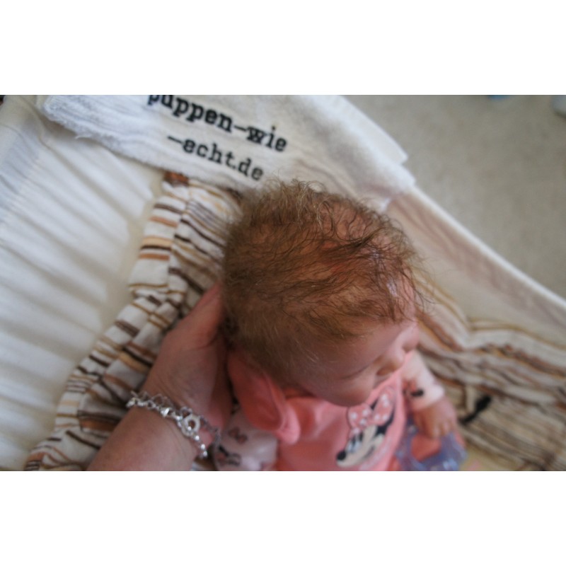 Unsere Haare sind mittelbraun und im micro Rooting Verfahren einzeln eingepflanzt (Feinstes Mohair ). Anschließend natürlich von innen versiegelt. Und nun kann man unsere Haare kämmen und auch mal leicht waschen. Die passenden Wimpern haben wir auch dazu gerootet bekommen, das sieht jetzt richtig echt aus. Unsere Finger- und Fußnägel wurden fein Pedi- und Manikürt und anschließend dauerhaft versiegelt. Zum Schluss bekamen wir noch einen Magnetschnuller. Und ein Duftöl aufgetragen, jetzt riechen wir auch noch wie ein echtes Baby.