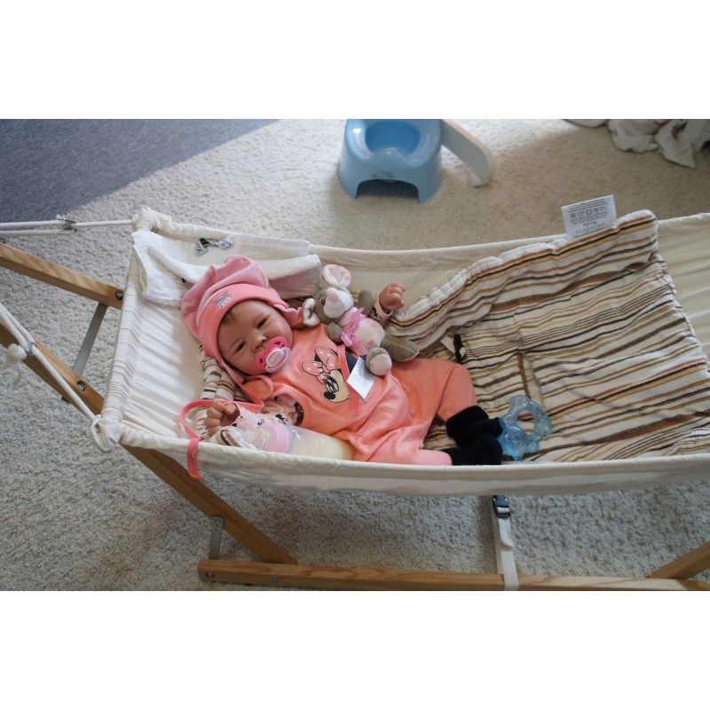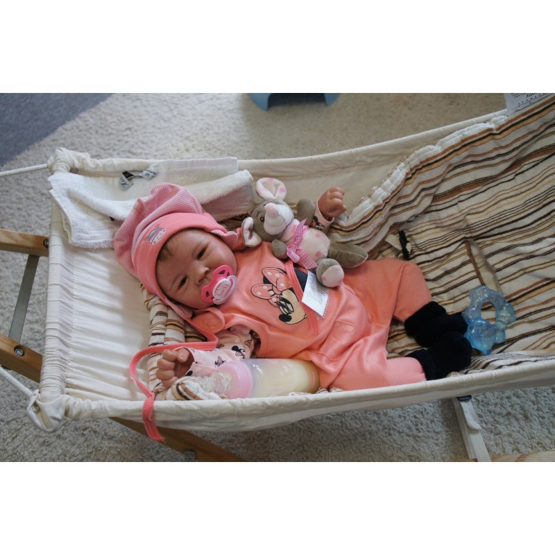 Wir haben auch das richtige Gewicht wie ein echtes Baby und liegen auch so in Deinen Armen!!! Wir riechen auch wundervoll nach Baby.