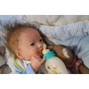 Ich habe weiche lange Arme und Beine und einen weichen Flanellkörper. So kann ich jetzt jede Babyposition einnehmen und mich gut an Dich herankuscheln. Außerdem kann ich im Sommer kurze Kleidung tragen. Die Arme und Beine sind realistisch gefüllt und mein Körper und Köpfchen wurden mit ungiftigen Materialien gewichtet. Meine Beine und Arme lassen sich dank den gelenken im Körper perfekt bewegen.