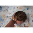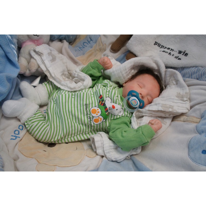 Meine Haare sind Schokoladenbraun und im micro Rooting Verfahren einzeln eingepflanzt (Feinstes Babyfluff Mohair ). Anschließend natürlich von innen versiegelt. Und nun kann man meine Haare kämmen und auch mal leicht waschen. Die passenden Wimpern habe ich auch dazu gerootet bekommen, das sieht jetzt richtig echt aus. Meine Finger- und Fußnägel wurden fein Pedi- und Manikürt und anschließend dauerhaft versiegelt. Zum Schluss bekam ich noch einen Magnetschnuller. Und ein Duftöl aufgetragen, jetzt riech ich auch noch wie ein echtes Baby.