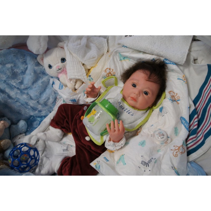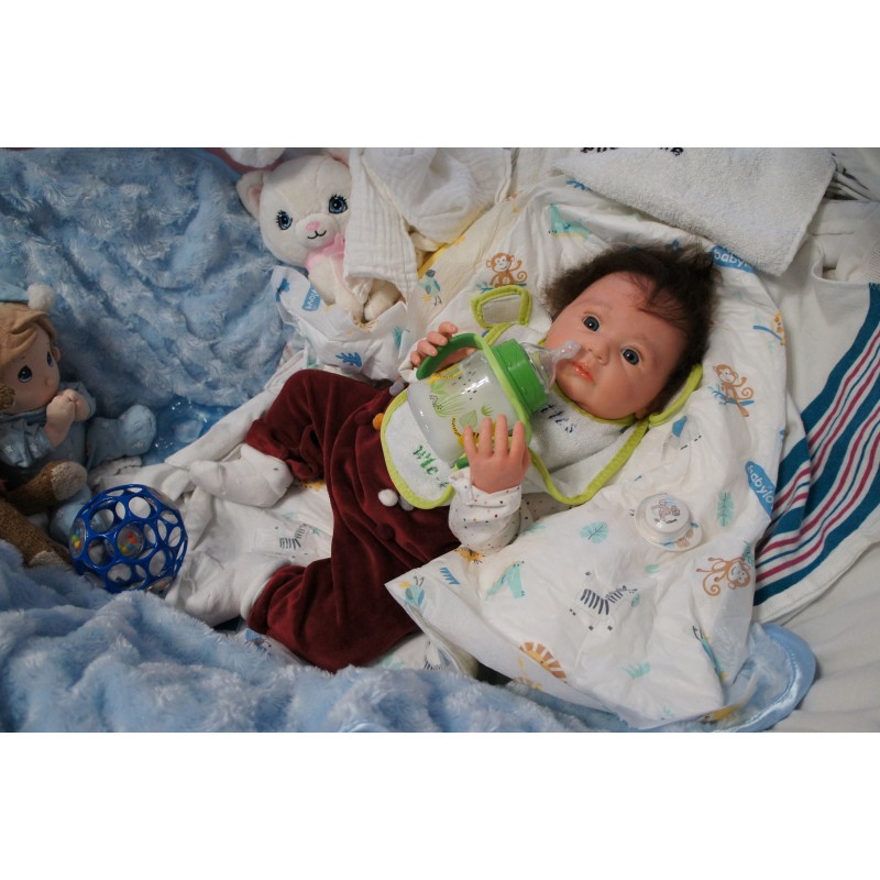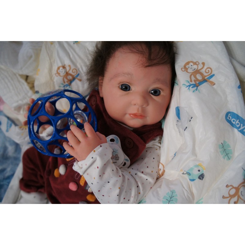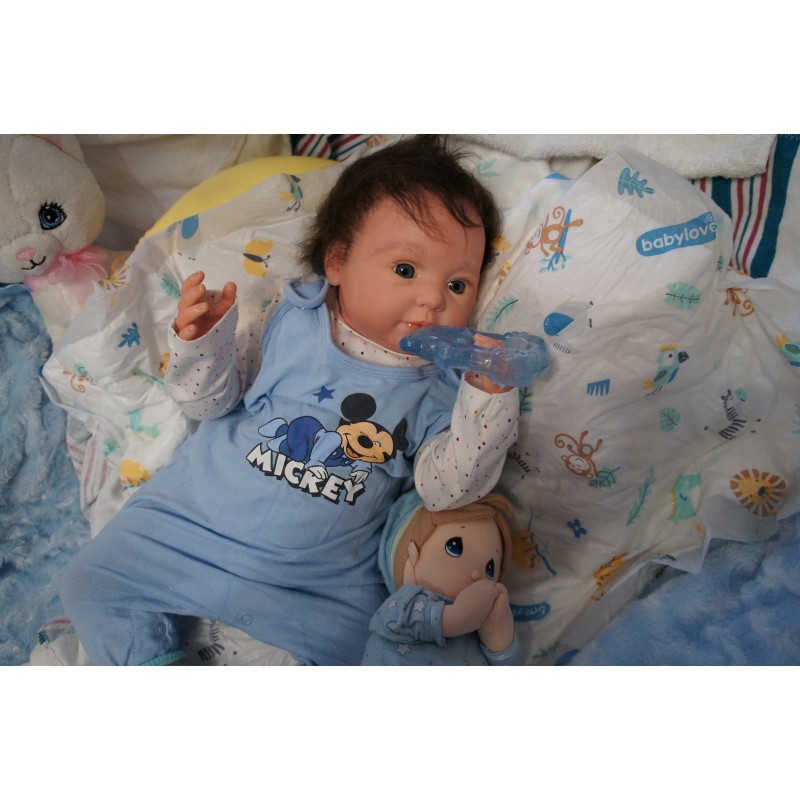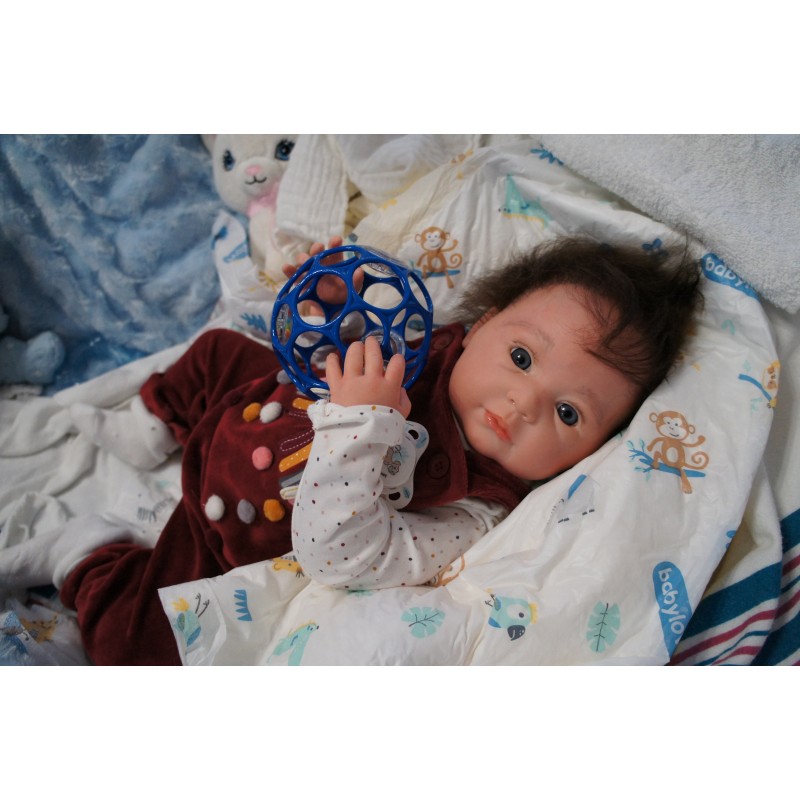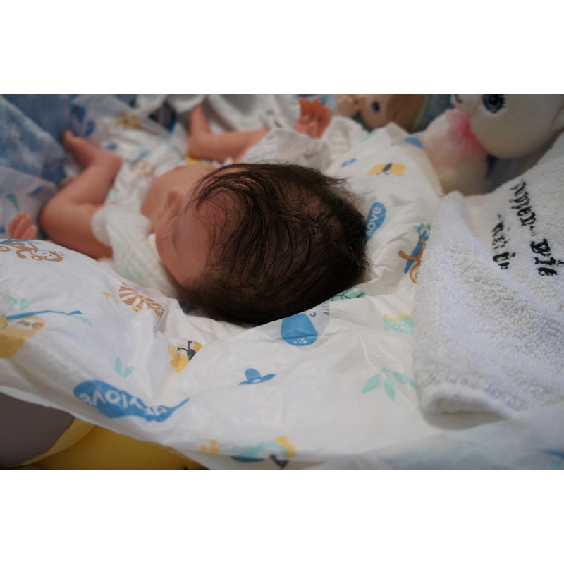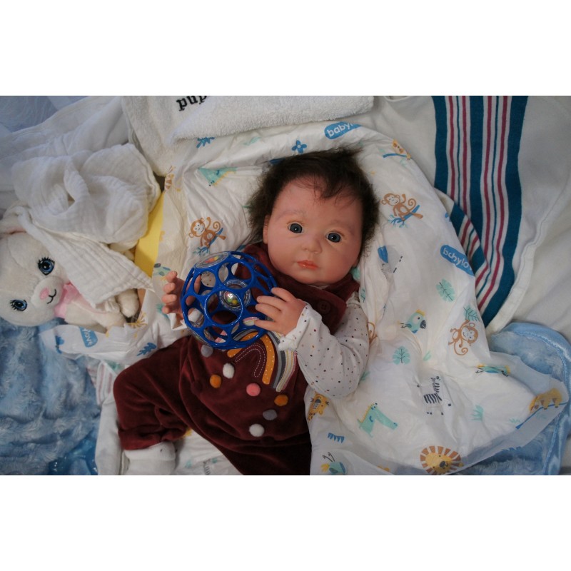 Meine Haare sind dunkelbraun und im micro Rooting Verfahren einzeln eingepflanzt (Feinstes Babyfluff Mohair ). Anschließend natürlich von innen versiegelt. Und nun kann man meine Haare kämmen und auch mal leicht waschen. Die passenden Wimpern habe ich auch dazu gerootet bekommen, das sieht jetzt richtig echt aus. Meine Finger- und Fußnägel wurden fein Pedi- und Manikürt und anschließend dauerhaft versiegelt. Zum Schluss bekam ich noch einen Magnetschnuller. Und ein Duftöl aufgetragen, jetzt riech ich auch noch wie ein echtes Baby.