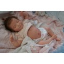 Ich wurde mit hochwertigen Farben in Real Effekt Technik eingefärbt. Mit Genesis Farben habe ich dieses alles noch mal zum Schluss gut versiegelt und eingebrannt. Diese wurde in mehreren Schichten aufgetragen, sodass ein sehr realistisches Hautbild entstanden ist. (Wisch- und Wasserfest kein Abblättern mgl). Feinste Schattierungen und leichte Betonung der Speckfalten wurden bei mir auch nicht vergessen. Leichte Äderchen an Händen, Armen, Füßchen, Beinen, Ohren, Kopf und Gesicht lassen mich wie ein echtes Baby aussehen. Jedes Fältchen an mir wurde einzeln betont. Zarte Augenbrauen wurden mir auch gegeben. Meine Nase wurde geöffnet und hinterlegt, sodass ich jetzt auch gut Luft bekomme. Auch zarte Befeuchtung der Augen, Mund und Nase lassen mich noch echter wirken.