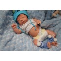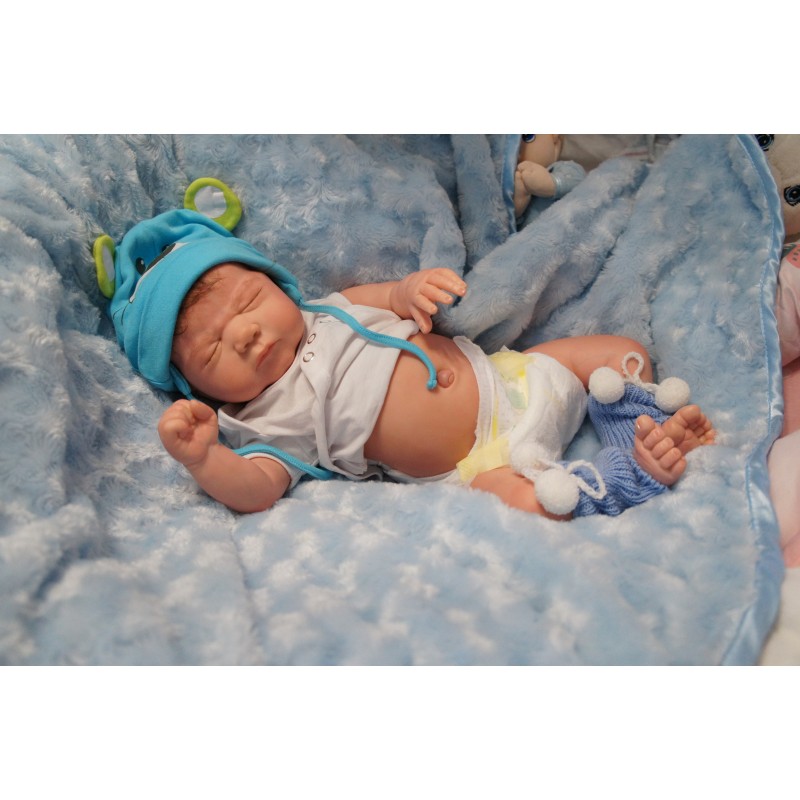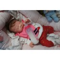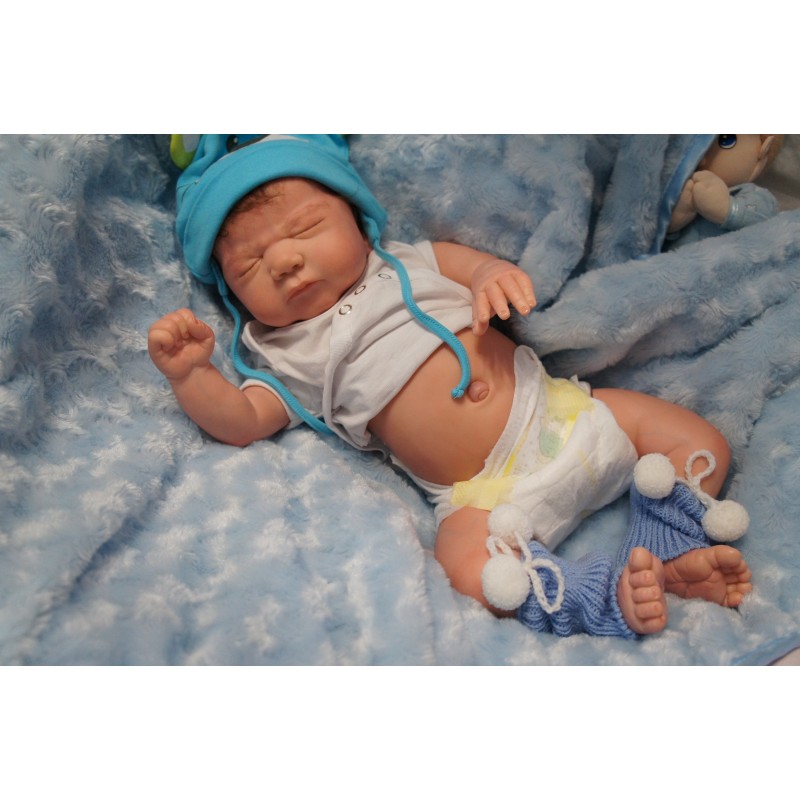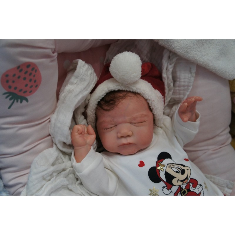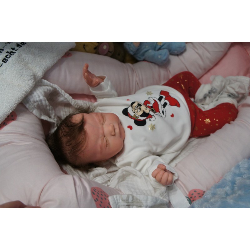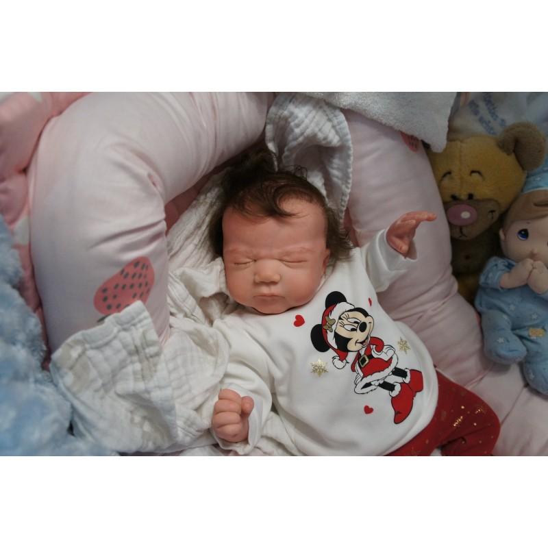Ich wurde mit hochwertigen Farben in Real Effekt Technik eingefärbt. Mit Genesis Farben habe ich dieses alles noch mal zum Schluss gut versiegelt und eingebrannt. Diese wurde in mehreren Schichten aufgetragen, sodass ein sehr realistisches Hautbild entstanden ist. (Wisch- und Wasserfest kein Abblättern mgl). Feinste Schattierungen und leichte Betonung der Speckfalten wurden bei mir auch nicht vergessen. Leichte Äderchen an Händen, Armen, Füßchen, Beinen, Ohren, Kopf und Gesicht lassen mich wie ein echtes Baby aussehen. Jedes Fältchen an mir wurde einzeln betont. Zarte Augenbrauen wurden mir auch gegeben. Meine Nase wurde geöffnet und hinterlegt, sodass ich jetzt auch gut Luft bekomme. Auch zarte Befeuchtung der Augen, Mund und Nase lassen mich noch echter wirken.