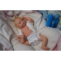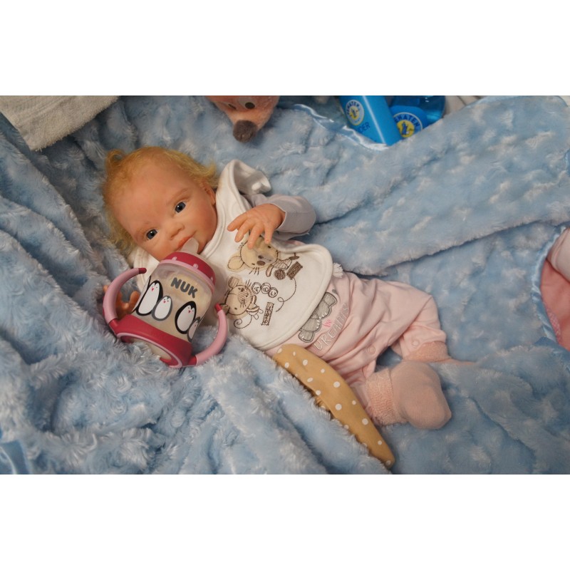 Meine Haare sind Blond und im micro Rooting Verfahren einzeln eingepflanzt (Feinstes Mohair ). Anschließend natürlich von innen versiegelt. Und nun kann man meine Haare kämmen und auch mal leicht waschen. Die passenden Wimpern habe ich auch dazu gerootet bekommen, das sieht jetzt richtig echt aus. Meine Finger- und Fußnägel wurden fein Pedi- und Manikürt und anschließend dauerhaft versiegelt. Zum Schluss bekam ich noch einen Magnetschnuller. Und ein Duftöl aufgetragen, jetzt riech ich auch noch wie ein echtes Baby.