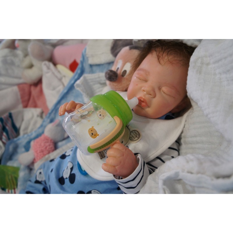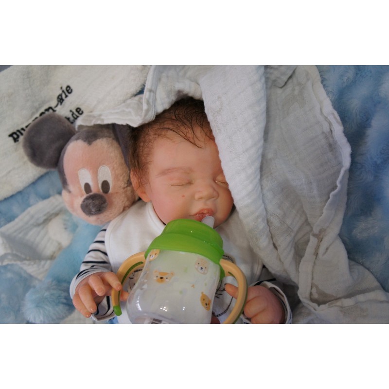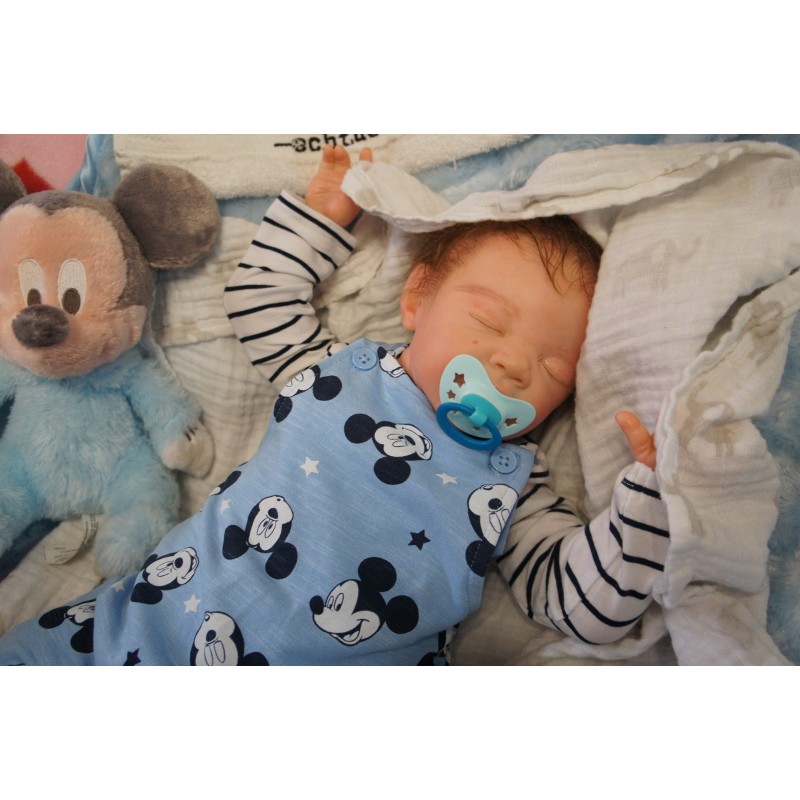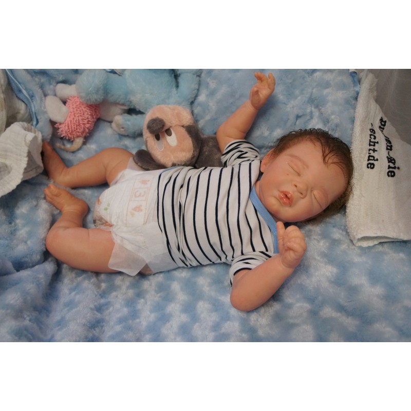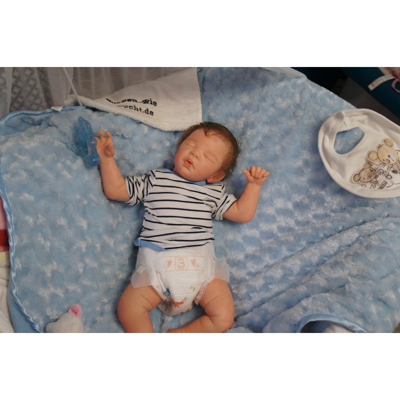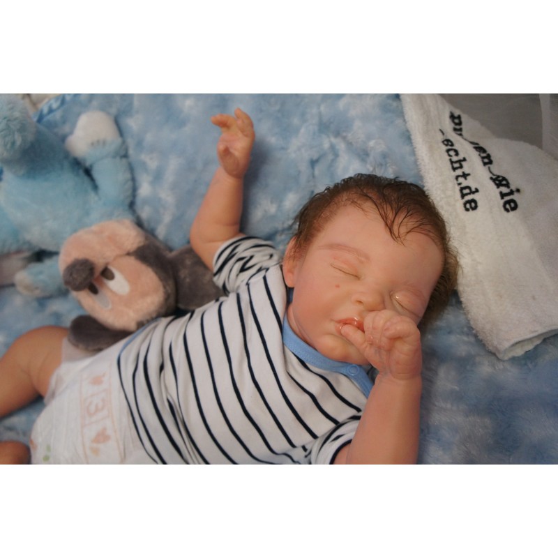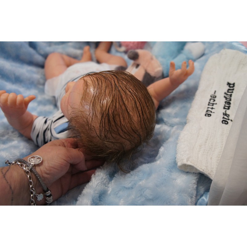 Meine Haare sind mittelbraun und im micro Rooting Verfahren einzeln eingepflanzt (Feinstes Babyfluff Mohair ). Anschließend natürlich von innen versiegelt. Und nun kann man meine Haare kämmen und auch mal leicht waschen. Die passenden Wimpern habe ich auch dazu gerootet bekommen, das sieht jetzt richtig echt aus. Meine Finger- und Fußnägel wurden fein Pedi- und Manikürt und anschließend dauerhaft versiegelt. Zum Schluss bekam ich noch einen Magnetschnuller. Und ein Duftöl aufgetragen, jetzt riech ich auch noch wie ein echtes Baby.
