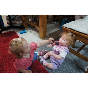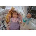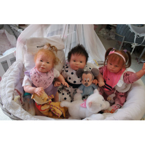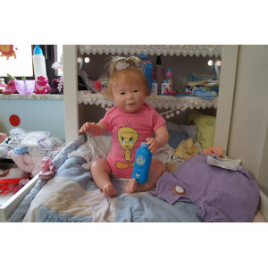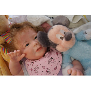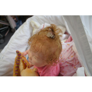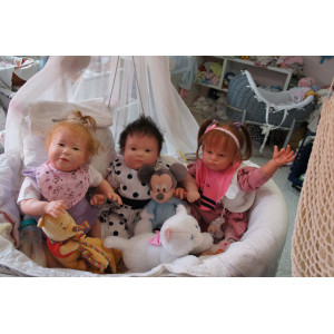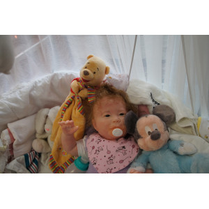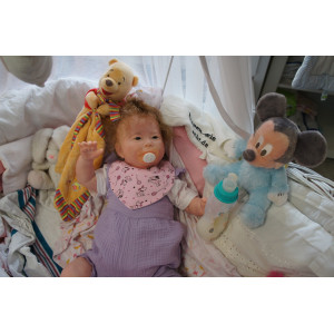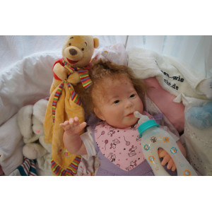 Meine Haare sind mittelblond und im micro Rooting Verfahren einzeln eingepflanzt (Feinstes Babyfluff Mohair ). Anschließend natürlich von innen versiegelt. Und nun kann man meine Haare kämmen und auch mal leicht waschen. Die passenden Wimpern habe ich auch dazu gerootet bekommen, das sieht jetzt richtig echt aus. Meine Finger- und Fußnägel wurden fein Pedi- und Manikürt und anschließend dauerhaft versiegelt. Zum Schluss bekam ich noch einen Magnetschnuller. Und ein Duftöl aufgetragen, jetzt riech ich auch noch wie ein echtes Baby.