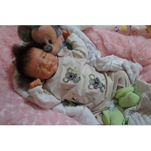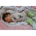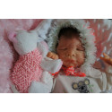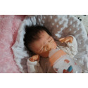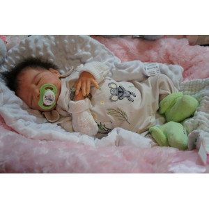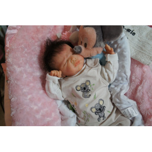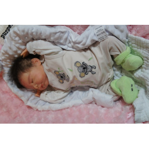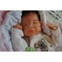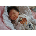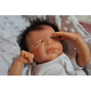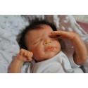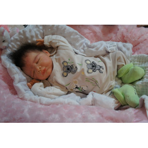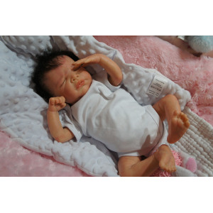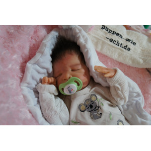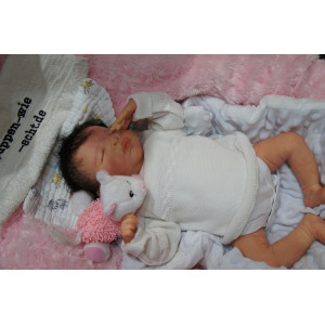 Ich wurde mit hochwertigen Farben in Real Effekt Technik eingefärbt. Mit Genesis Farben habe ich dieses alles noch mal zum Schluss gut versiegelt und eingebrannt. Diese wurde in mehreren Schichten aufgetragen, sodass ein sehr realistisches Hautbild entstanden ist. (Wisch- und Wasserfest kein Abblättern mgl). Feinste Schattierungen und leichte Betonung der Speckfalten wurden bei mir auch nicht vergessen. Leichte Äderchen an Händen, Armen, Füßchen, Beinen, Ohren, Kopf und Gesicht lassen mich wie ein echtes Baby aussehen. Jedes Fältchen an mir wurde einzeln betont. Zarte Augenbrauen wurden mir auch gegeben. Meine Nase wurde geöffnet und hinterlegt, sodass ich jetzt auch gut Luft bekomme. Auch zarte Befeuchtung der Augen, Mund und Nase lassen mich noch echter wirken.