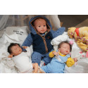 Ich habe weiche lange Arme und Beine und einen weichen Körper. So kann ich jetzt jede Babyposition einnehmen und mich gut an Dich herankuscheln. Außerdem kann ich im Sommer kurze Kleidung tragen. Die Arme und Beine sind realistisch gefüllt und mein Körper und Köpfchen wurden mit ungiftigen Materialien gewichtet. Meine Beine und Arme lassen sich im Körper bewegen.