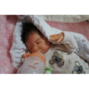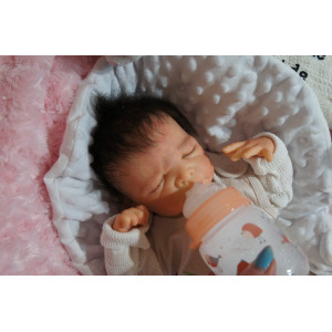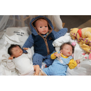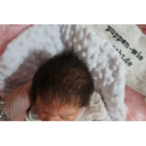 Meine Haare sind dunkelbraun und im micro Rooting Verfahren einzeln eingepflanzt (Feinstes Mohair ). Anschließend natürlich von innen versiegelt. Und nun kann man meine Haare kämmen und auch mal leicht waschen. Die passenden Wimpern habe ich auch dazu gerootet bekommen, das sieht jetzt richtig echt aus. Meine Finger- und Fußnägel wurden fein Pedi- und Manikürt und anschließend dauerhaft versiegelt. Zum Schluss bekam ich noch einen Magnetschnuller. Und ein Duftöl aufgetragen, jetzt riech ich auch noch wie ein echtes Baby.