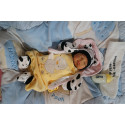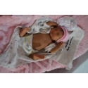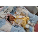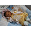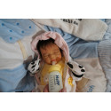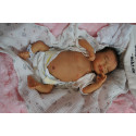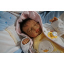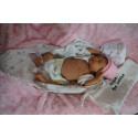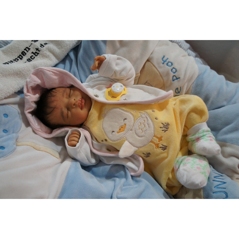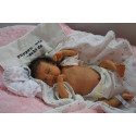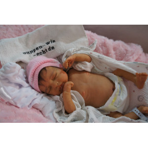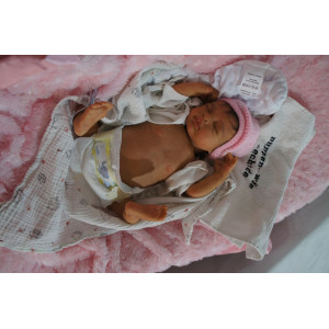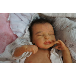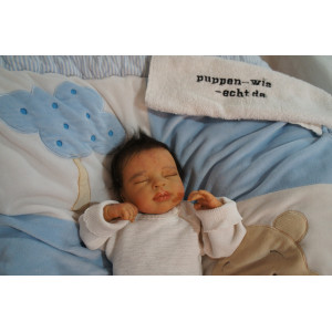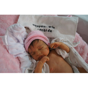 Ich wurde mit hochwertigen Farben in Real Effekt Technik eingefärbt. Mit Genesis Farben habe ich dieses alles noch mal zum Schluss gut versiegelt und eingebrannt. Diese wurde in mehreren Schichten aufgetragen, sodass ein sehr realistisches Hautbild entstanden ist. (Wisch- und Wasserfest kein Abblättern mgl). Feinste Schattierungen und leichte Betonung der Speckfalten wurden bei mir auch nicht vergessen. Leichte Äderchen an Händen, Armen, Füßchen, Beinen, Ohren, Kopf und Gesicht lassen mich wie ein echtes Baby aussehen. Jedes Fältchen an mir wurde einzeln betont. Zarte Augenbrauen wurden mir auch gegeben. Meine Nase wurde geöffnet und hinterlegt, sodass ich jetzt auch gut Luft bekomme. Auch zarte Befeuchtung der Augen, Mund und Nase lassen mich noch echter wirken.