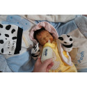 Ich habe weiche lange Arme und Beine und einen weichen Körper. So kann ich jetzt jede Babyposition einnehmen und mich gut an Dich herankuscheln. Außerdem kann ich im Sommer kurze Kleidung tragen. Die Arme und Beine sind realistisch gefüllt und mein Körper und Köpfchen wurden mit ungiftigen Materialien gewichtet. Meine Beine und Arme lassen sich im Körper perfekt bewegen.