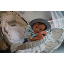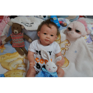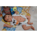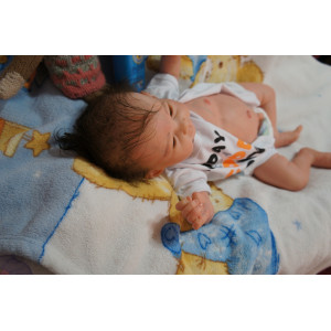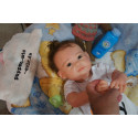 Ich wurde mit hochwertigen Farben in Real Effekt Technik eingefärbt. Mit Genesis Farben habe ich dieses alles noch mal zum Schluss gut versiegelt und eingebrannt. Diese wurde in mehreren Schichten aufgetragen, sodass ein sehr realistisches Hautbild entstanden ist. (Wisch- und Wasserfest kein Abblättern mgl). Feinste Schattierungen und leichte Betonung der Speckfalten wurden bei mir auch nicht vergessen. Leichte Äderchen an Händen, Armen, Füßchen, Beinen, Ohren, Kopf und Gesicht lassen mich wie ein echtes Baby aussehen. Jedes Fältchen an mir wurde einzeln betont. Zarte Augenbrauen wurden mir auch gegeben. Meine Nase wurde geöffnet und hinterlegt, sodass ich jetzt auch gut Luft bekomme. Auch zarte Befeuchtung der Augen, Mund und Nase lassen mich noch echter wirken.