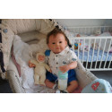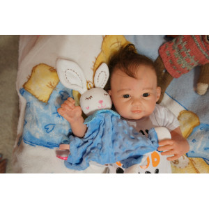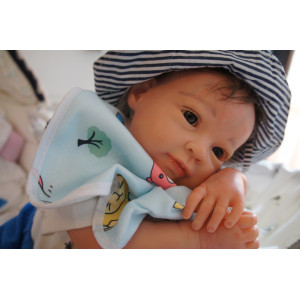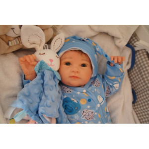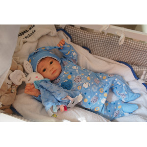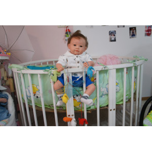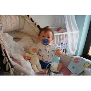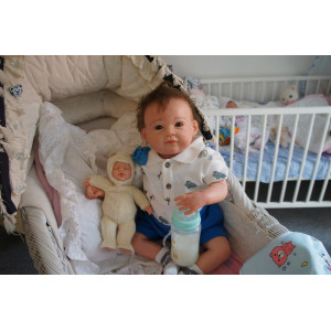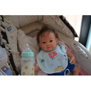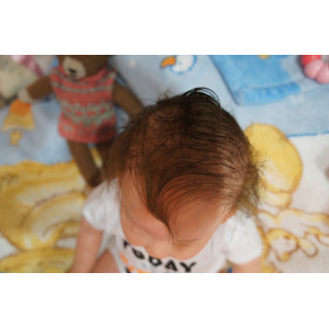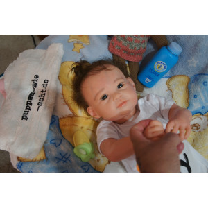 Meine Haare sind mittelbraun und im micro Rooting Verfahren einzeln eingepflanzt (Feinstes Mohair ). Anschließend natürlich von innen versiegelt. Und nun kann man meine Haare kämmen und auch mal leicht waschen. Die passenden Wimpern habe ich auch dazu gerootet bekommen, das sieht jetzt richtig echt aus. Meine Finger- und Fußnägel wurden fein Pedi- und Manikürt und anschließend dauerhaft versiegelt. Zum Schluss bekam ich noch einen Magnetschnuller. Und ein Duftöl aufgetragen, jetzt riech ich auch noch wie ein echtes Baby.