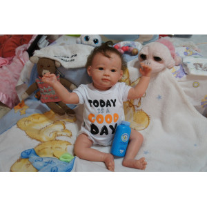 Ich habe auch das richtige Gewicht wie ein echtes Baby und liege auch so in Deinen Armen!!! Ich rieche auch wundervoll nach Baby.