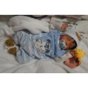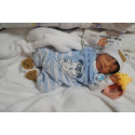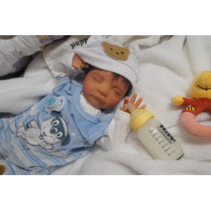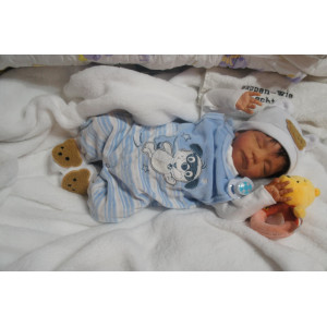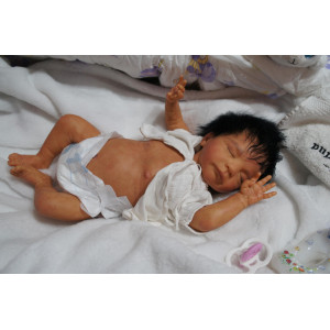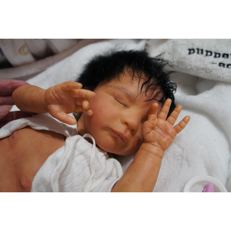 Ich wurde mit hochwertigen Farben in Real Effekt Technik eingefärbt. Mit Genesis Farben habe ich dieses alles noch mal zum Schluss gut versiegelt und eingebrannt. Diese wurde in mehreren Schichten aufgetragen, sodass ein sehr realistisches Hautbild entstanden ist. (Wisch- und Wasserfest kein Abblättern mgl). Feinste Schattierungen und leichte Betonung der Speckfalten wurden bei mir auch nicht vergessen. Leichte Äderchen an Händen, Armen, Füßchen, Beinen, Ohren, Kopf und Gesicht lassen mich wie ein echtes Baby aussehen. Jedes Fältchen an mir wurde einzeln betont. Zarte Augenbrauen wurden mir auch gegeben. Meine Nase wurde geöffnet und hinterlegt, sodass ich jetzt auch gut Luft bekomme. Auch zarte Befeuchtung der Augen, Mund und Nase lassen mich noch echter wirken.