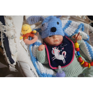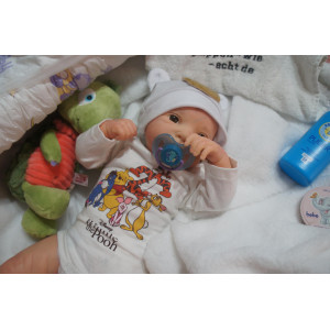 Ich habe auch das richtige Gewicht wie ein echtes Baby und liege auch so in Deinen Armen!!! Ich rieche auch wundervoll nach Baby.