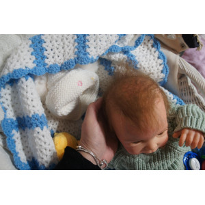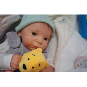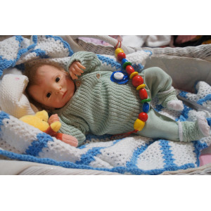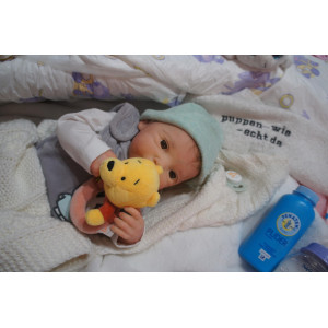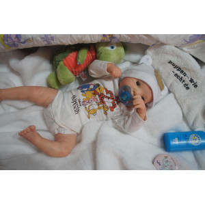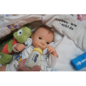 Meine Haare sind mittelbraun und im micro Rooting Verfahren einzeln eingepflanzt (Feinstes Mohair ). Anschließend natürlich von innen versiegelt. Und nun kann man meine Haare kämmen und auch mal leicht waschen. Die passenden Wimpern habe ich auch dazu gerootet bekommen, das sieht jetzt richtig echt aus. Meine Finger- und Fußnägel wurden fein Pedi- und Manikürt und anschließend dauerhaft versiegelt. Zum Schluss bekam ich noch einen Magnetschnuller. Und ein Duftöl aufgetragen, jetzt riech ich auch noch wie ein echtes Baby.