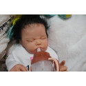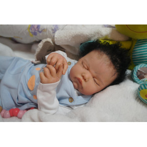 Meine Haare sind schwarz und im micro Rooting Verfahren einzeln eingepflanzt (Feinstes Mohair ). Anschließend natürlich von innen versiegelt. Und nun kann man meine Haare kämmen und auch mal leicht waschen. Die passenden Wimpern habe ich auch dazu gerootet bekommen, das sieht jetzt richtig echt aus. Meine Finger- und Fußnägel wurden fein Pedi- und Manikürt und anschließend dauerhaft versiegelt. Zum Schluss bekam ich noch einen Magnetschnuller. Und ein Duftöl aufgetragen, jetzt riech ich auch noch wie ein echtes Baby.