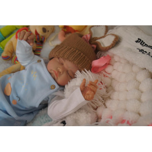 Ich wurde mit hochwertigen Farben in Real Effekt Technik eingefärbt. Mit Genesis Farben habe ich dieses alles noch mal zum Schluss gut versiegelt und eingebrannt. Diese wurde in mehreren Schichten aufgetragen, sodass ein sehr realistisches Hautbild entstanden ist. (Wisch- und Wasserfest kein Abblättern mgl). Feinste Schattierungen und leichte Betonung der Speckfalten wurden bei mir auch nicht vergessen. Leichte Äderchen an Händen, Armen, Füßchen, Beinen, Ohren, Kopf und Gesicht lassen mich wie ein echtes Baby aussehen. Jedes Fältchen an mir wurde einzeln betont. Zarte Augenbrauen wurden mir auch gegeben. Meine Nase wurde geöffnet und hinterlegt, sodass ich jetzt auch gut Luft bekomme. Auch zarte Befeuchtung der Augen, Mund und Nase lassen mich noch echter wirken.