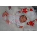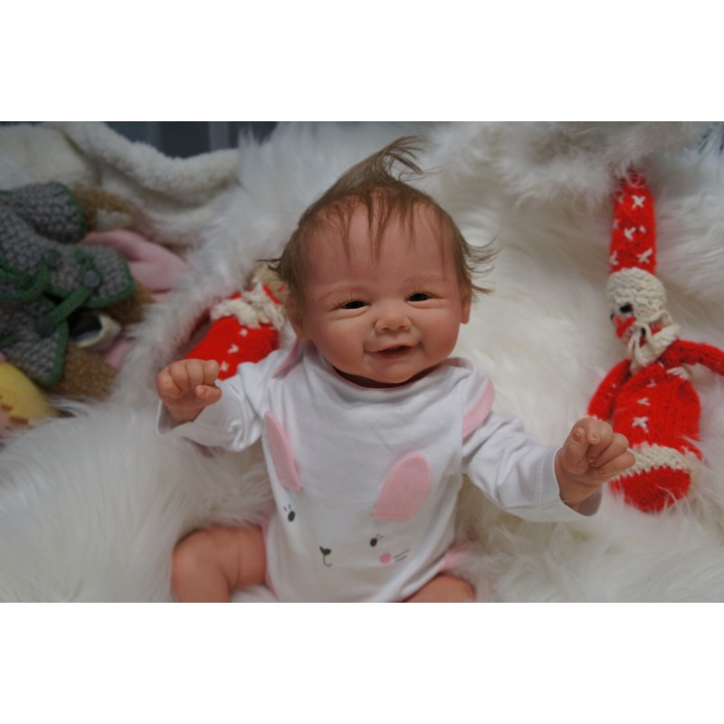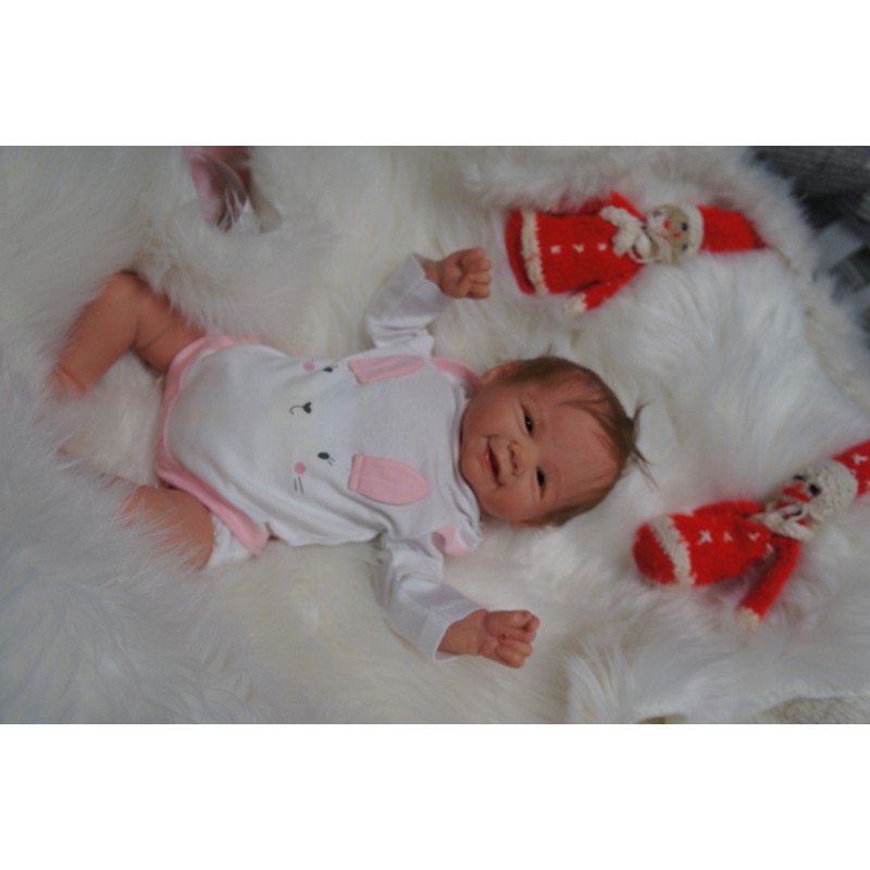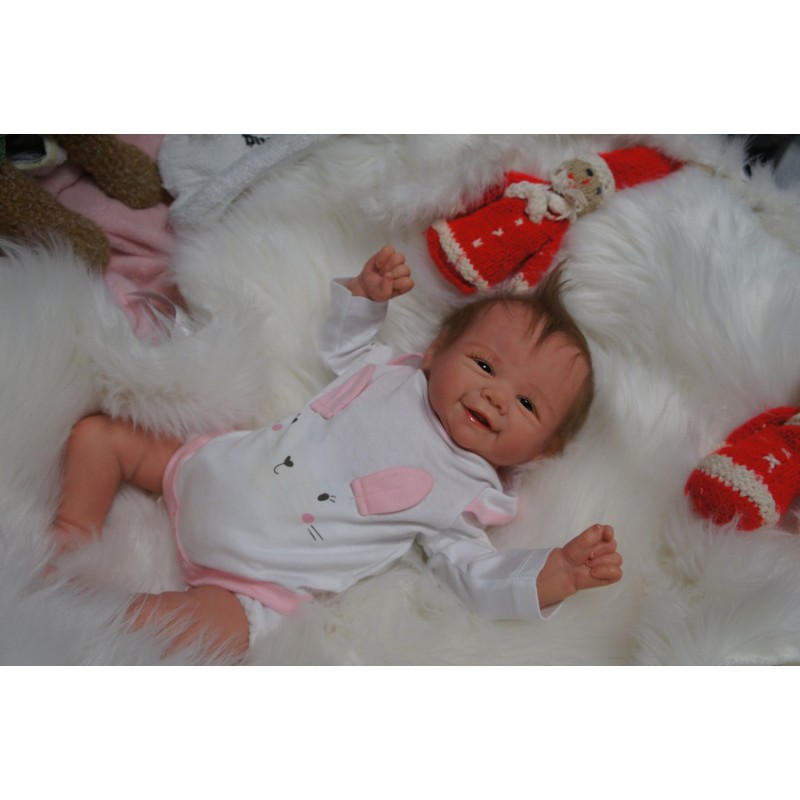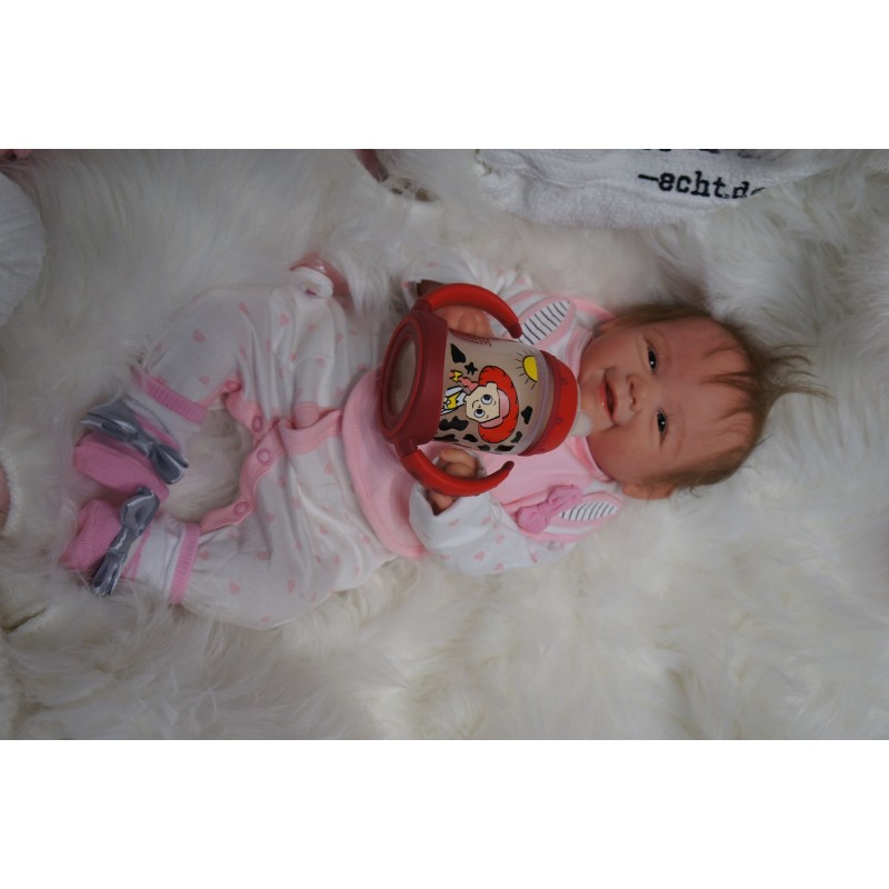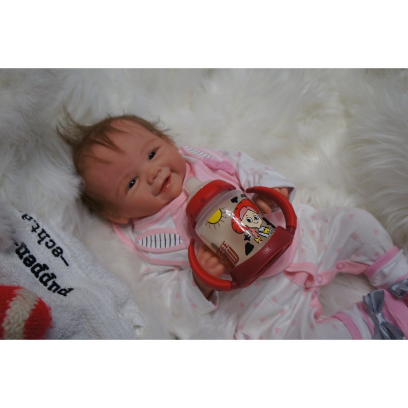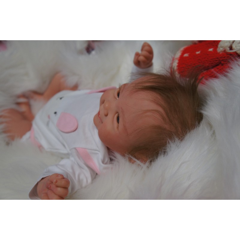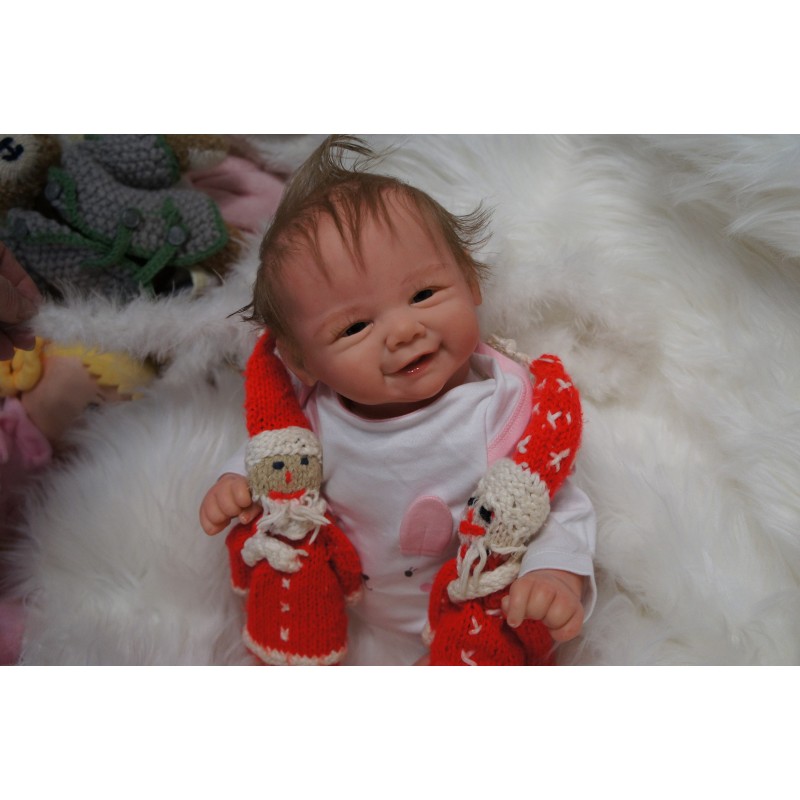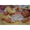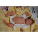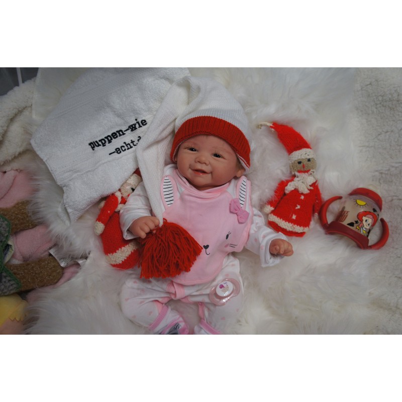 Ich wurde mit hochwertigen Farben in Real Effekt Technik eingefärbt. Mit Genesis Farben habe ich dieses alles noch mal zum Schluss gut versiegelt und eingebrannt. Diese wurde in mehreren Schichten aufgetragen, sodass ein sehr realistisches Hautbild entstanden ist. (Wisch- und Wasserfest kein Abblättern mgl). Feinste Schattierungen und leichte Betonung der Speckfalten wurden bei mir auch nicht vergessen. Leichte Äderchen an Händen, Armen, Füßchen, Beinen, Ohren, Kopf und Gesicht lassen mich wie ein echtes Baby aussehen. Jedes Fältchen an mir wurde einzeln betont. Zarte Augenbrauen wurden mir auch gegeben. Meine Nase wurde geöffnet und hinterlegt, sodass ich jetzt auch gut Luft bekomme. Auch zarte Befeuchtung der Augen, Mund und Nase lassen mich noch echter wirken.