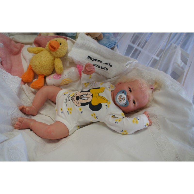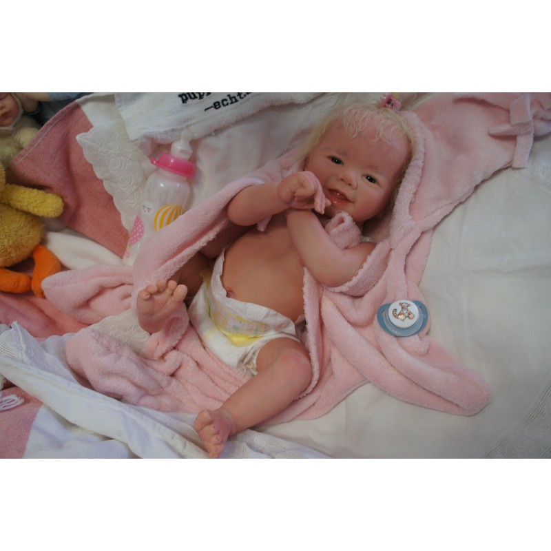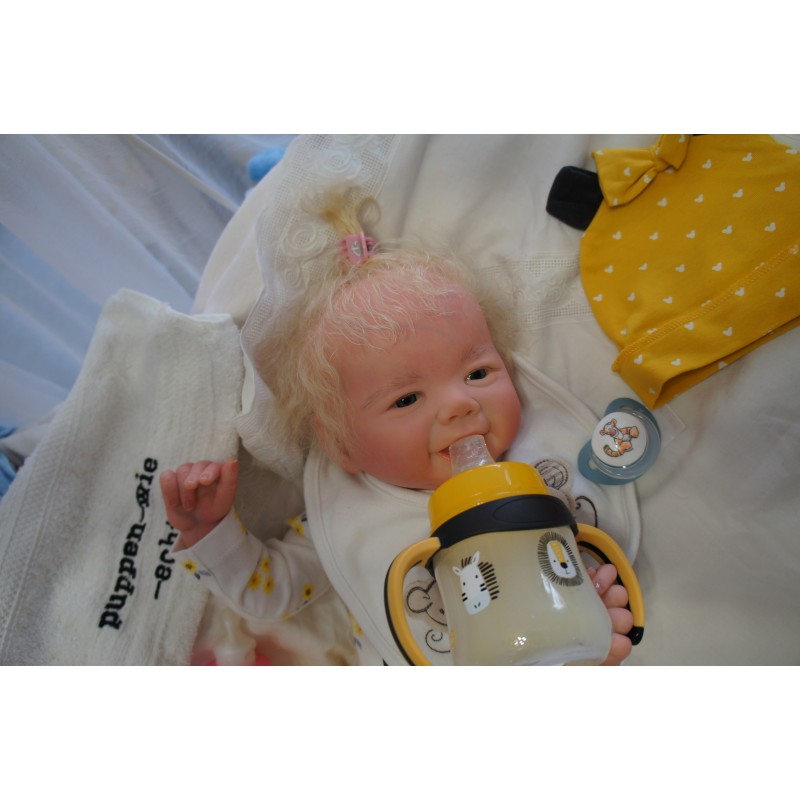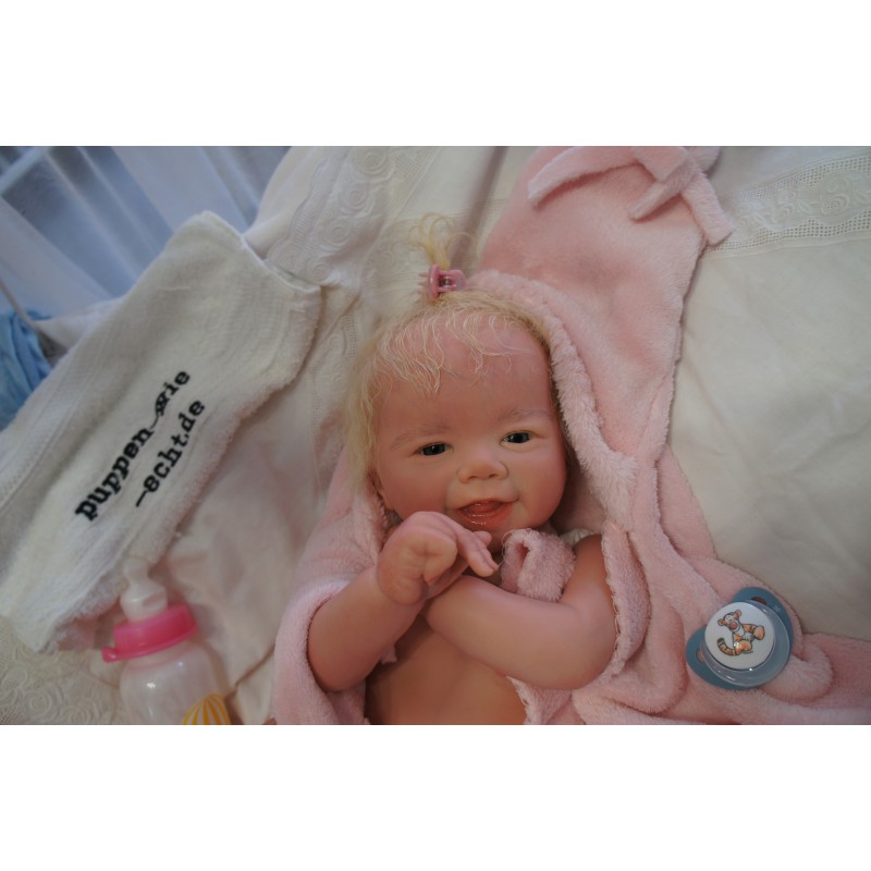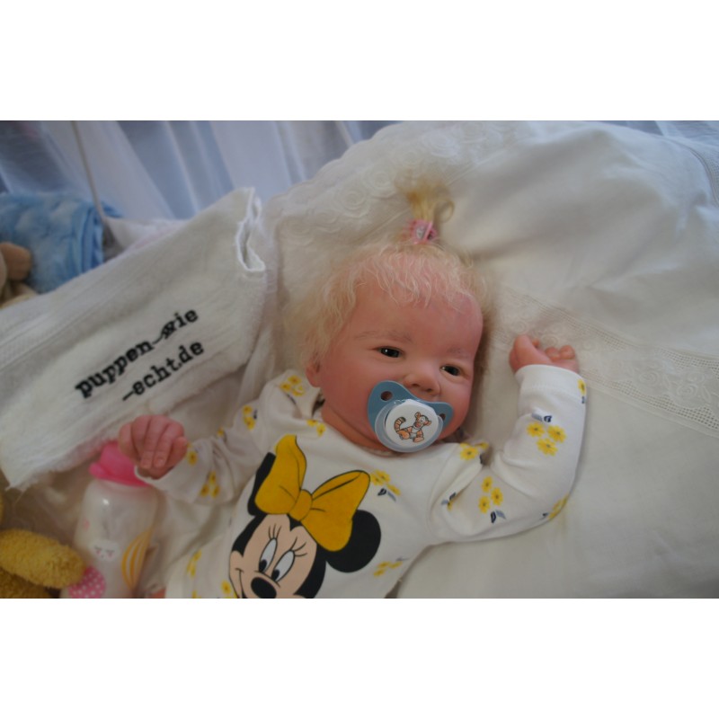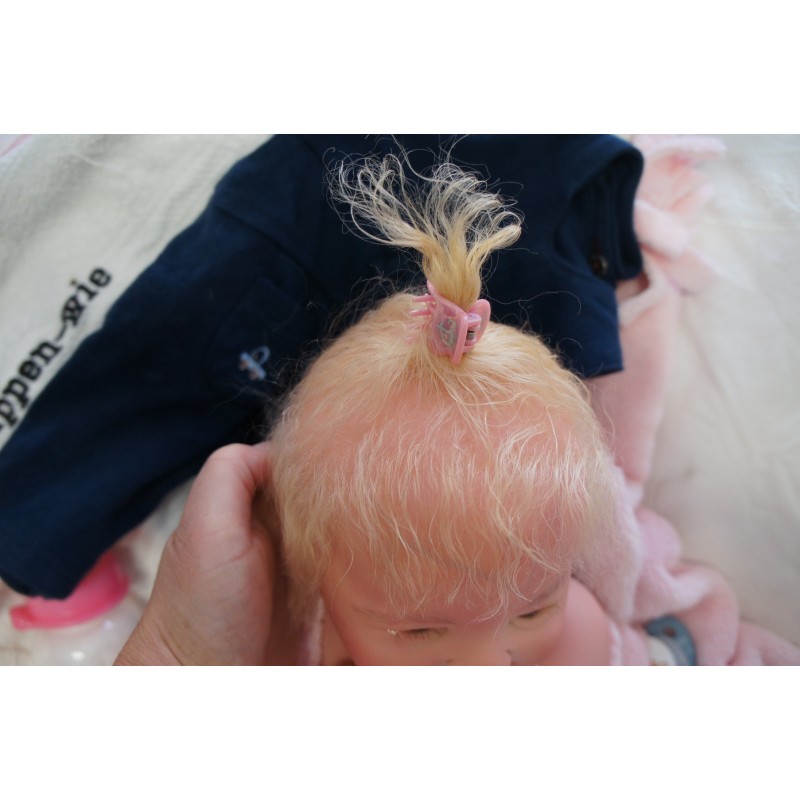Meine Haare sind Hellblond und im micro Rooting Verfahren einzeln eingepflanzt (Feinstes Mohair ). Anschließend natürlich von innen versiegelt. Und nun kann man meine Haare kämmen und auch mal leicht waschen. Die passenden Wimpern habe ich auch dazu gerootet bekommen, das sieht jetzt richtig echt aus. Meine Finger- und Fußnägel wurden fein Pedi- und Manikürt und anschließend dauerhaft versiegelt. Zum Schluss bekam ich noch einen Magnetschnuller. Und ein Duftöl aufgetragen, jetzt riech ich auch noch wie ein echtes Baby.
