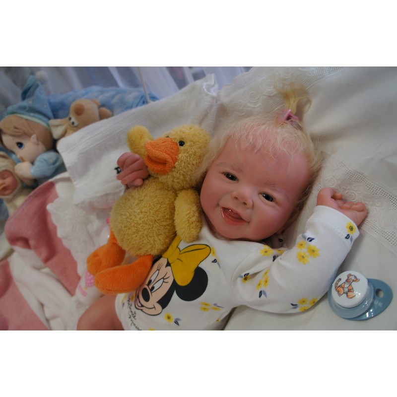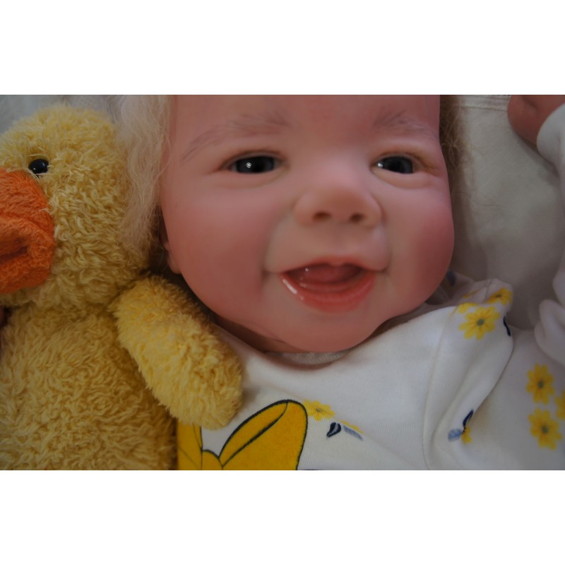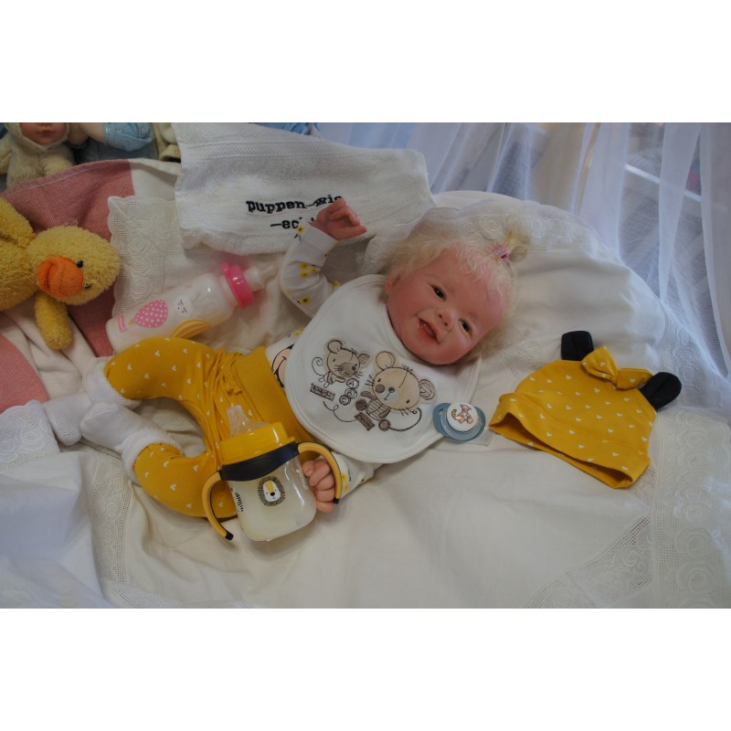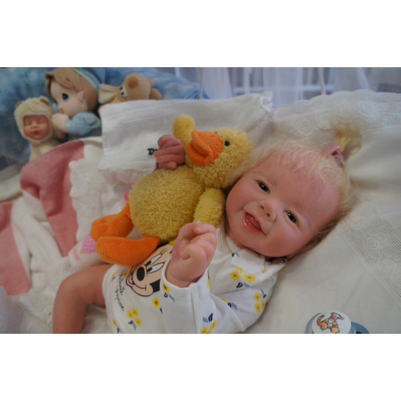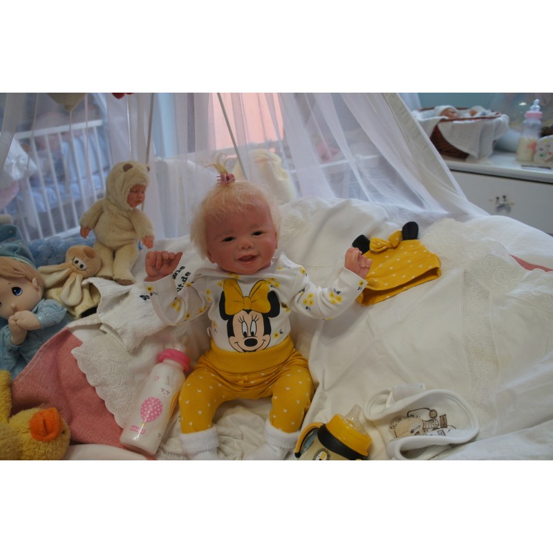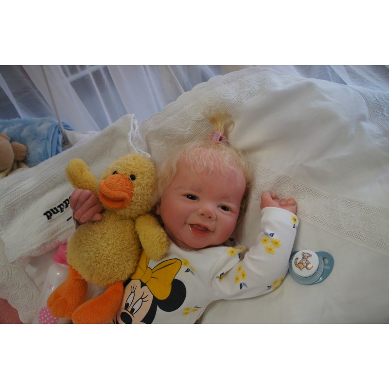 Meine Haare sind Hellblond und im micro Rooting Verfahren einzeln eingepflanzt (Feinstes Mohair ). Anschließend natürlich von innen versiegelt. Und nun kann man meine Haare kämmen und auch mal leicht waschen. Die passenden Wimpern habe ich auch dazu gerootet bekommen, das sieht jetzt richtig echt aus. Meine Finger- und Fußnägel wurden fein Pedi- und Manikürt und anschließend dauerhaft versiegelt. Zum Schluss bekam ich noch einen Magnetschnuller. Und ein Duftöl aufgetragen, jetzt riech ich auch noch wie ein echtes Baby.