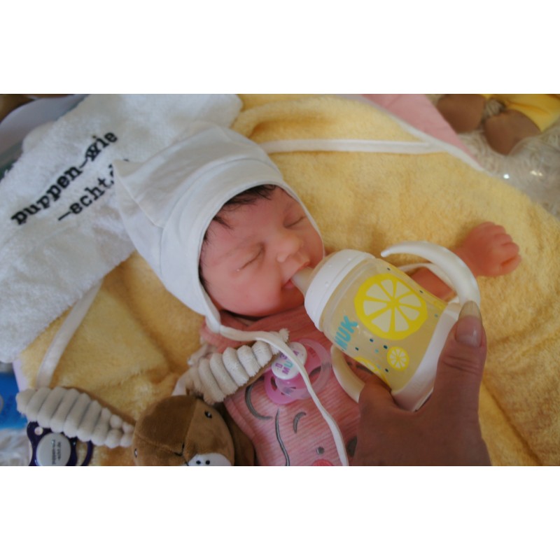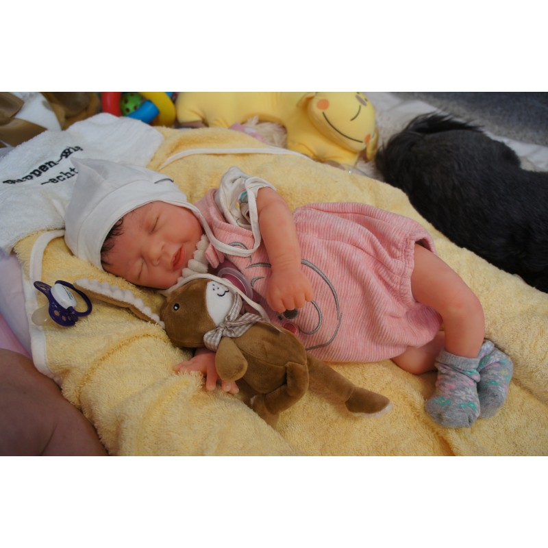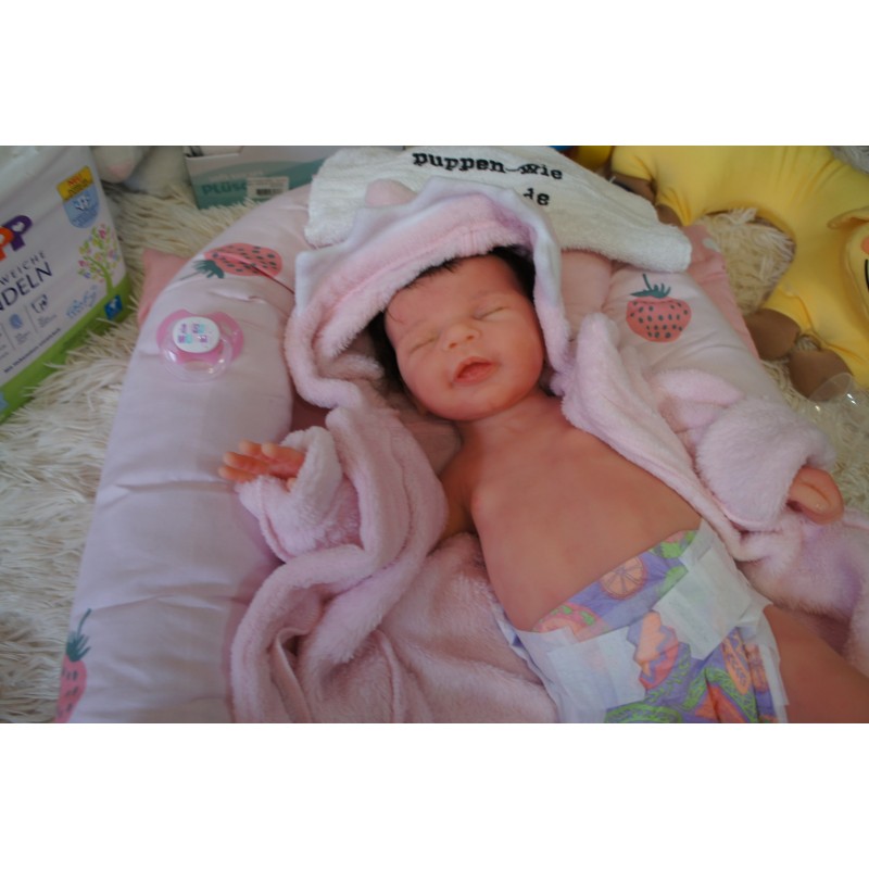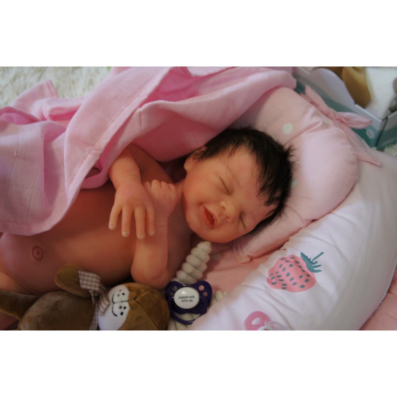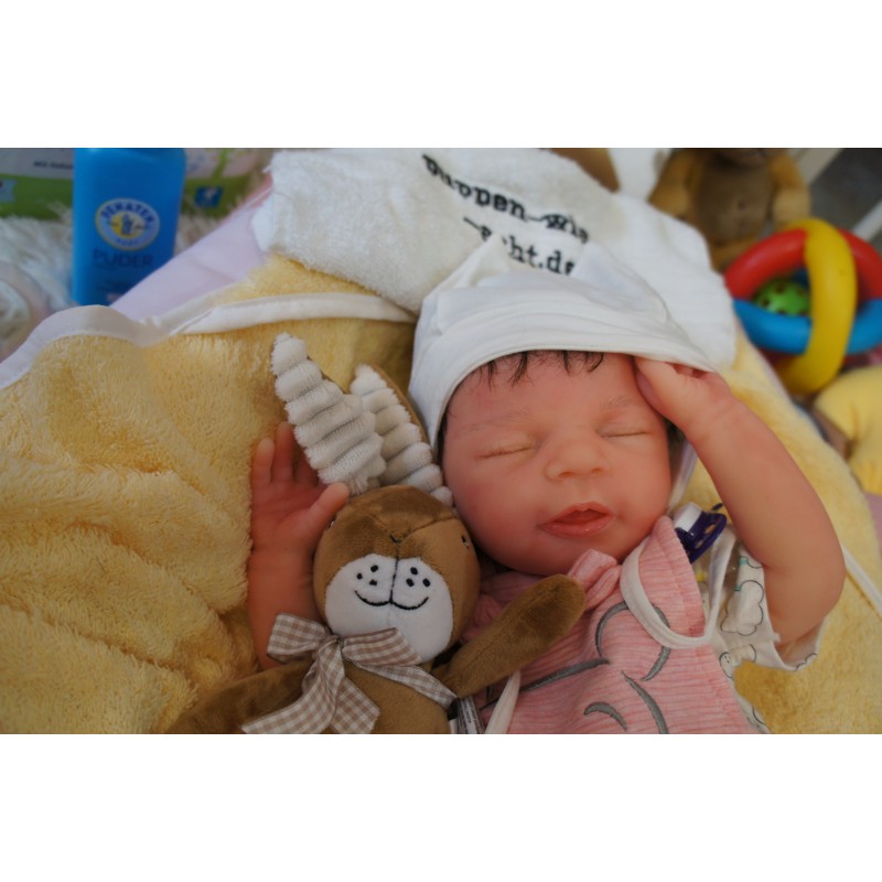 Sie ist ein Vollsilikonbaby von der Künstlerin Angela Degner.