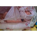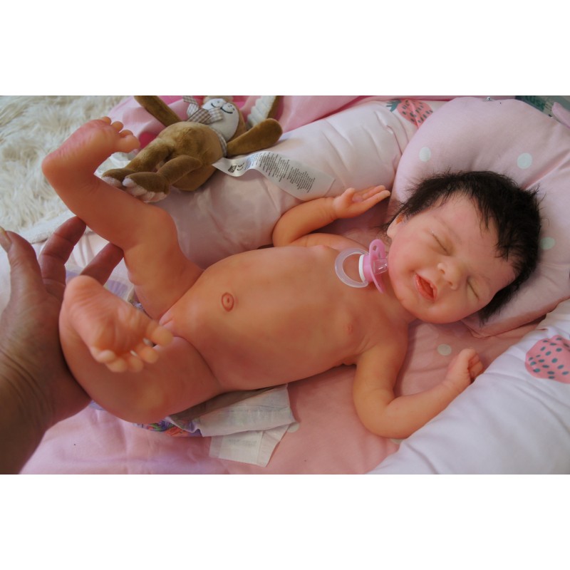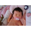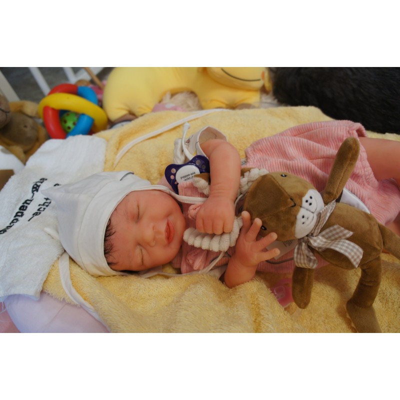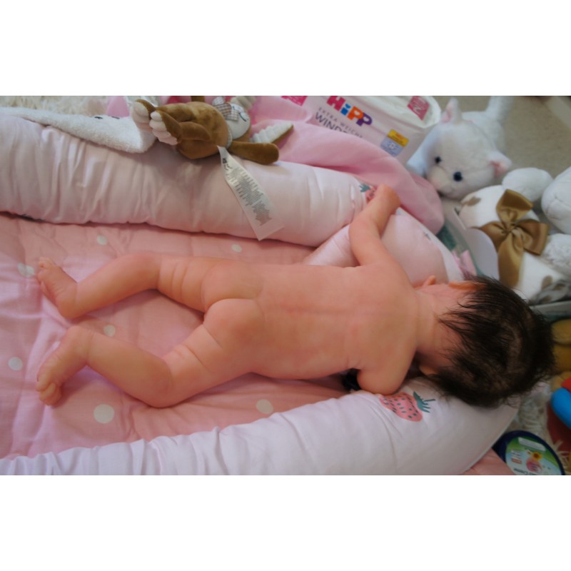 Meine Haare sind dunkelbraun und im micro Rooting Verfahren einzeln eingepflanzt (Feinstes Mohair ). Die passenden Wimpern habe ich auch dazu gerootet bekommen, das sieht jetzt richtig echt aus. Meine Finger- und Fußnägel wurden fein Pedi- und Manikürt und anschließend dauerhaft versiegelt. Und ein Duftöl aufgetragen, jetzt riech ich auch noch wie ein echtes Baby.