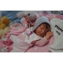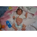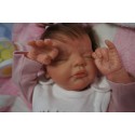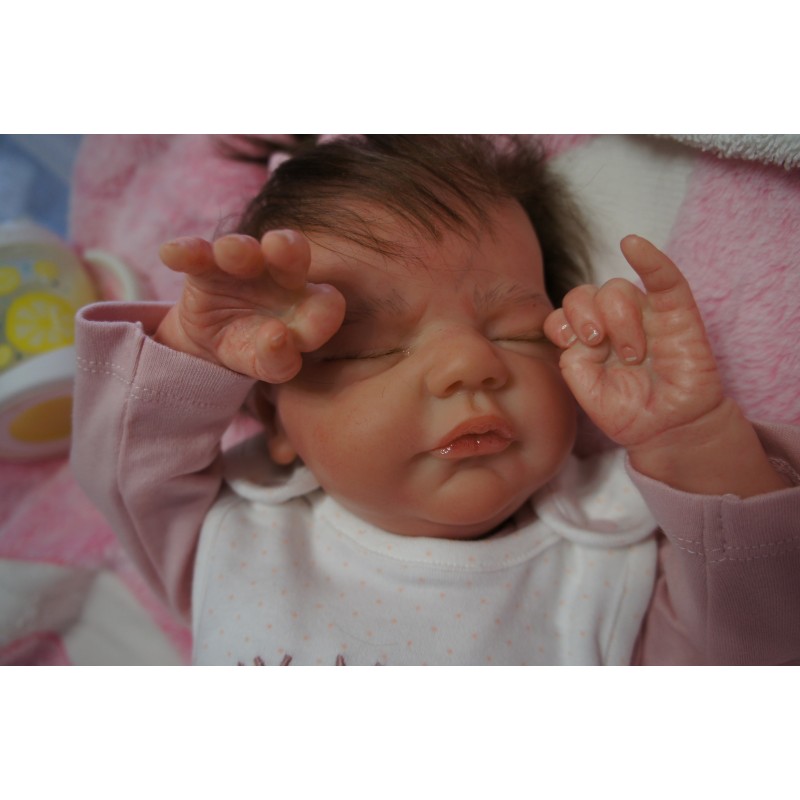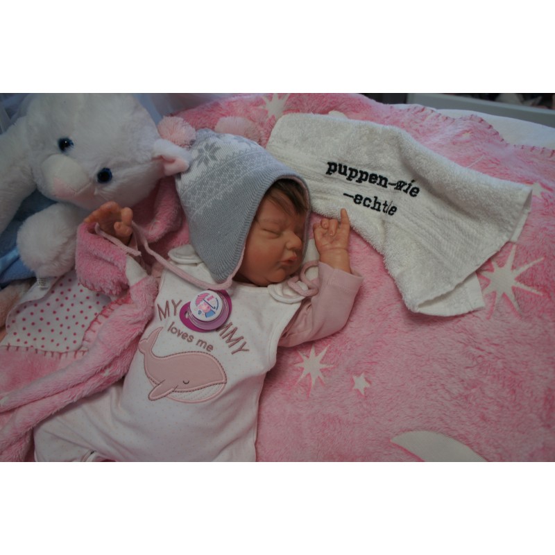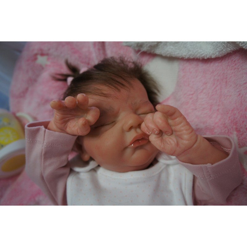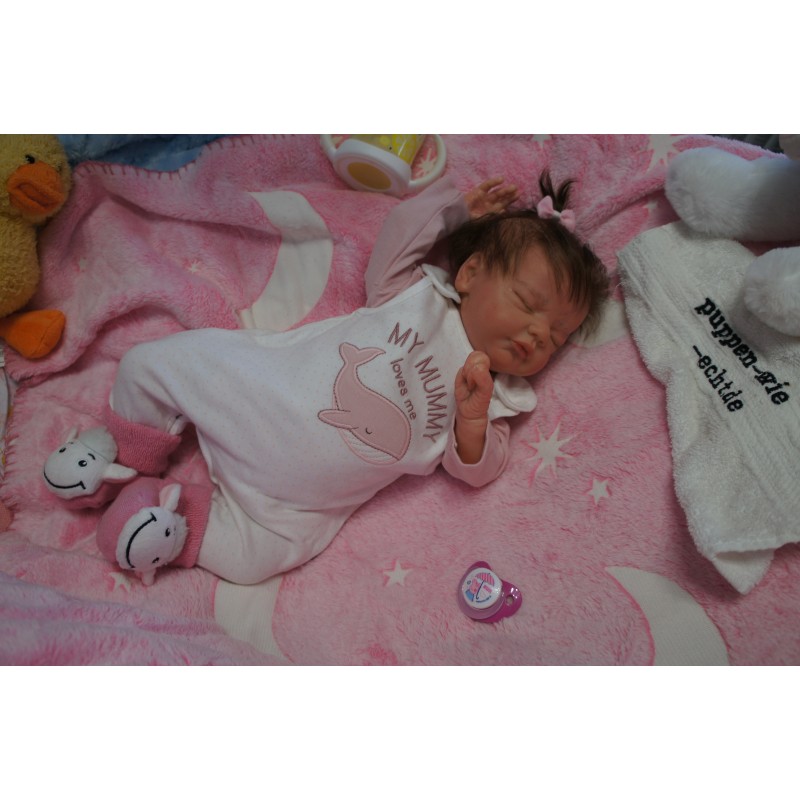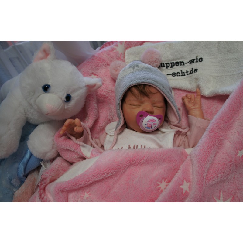 Ich wurde mit hochwertigen Farben in Real Effekt Technik eingefärbt. Mit Genesis Farben habe ich dieses alles noch mal zum Schluss gut versiegelt und eingebrannt. Diese wurde in mehreren Schichten aufgetragen, sodass ein sehr realistisches Hautbild entstanden ist. (Wisch- und Wasserfest kein Abblättern mgl). Feinste Schattierungen und leichte Betonung der Speckfalten wurden bei mir auch nicht vergessen. Leichte Äderchen an Händen, Armen, Füßchen, Beinen, Ohren, Kopf und Gesicht lassen mich wie ein echtes Baby aussehen. Jedes Fältchen an mir wurde einzeln betont. Zarte Augenbrauen wurden mir auch gegeben. Meine Nase wurde geöffnet und hinterlegt, sodass ich jetzt auch gut Luft bekomme. Auch zarte Befeuchtung der Augen, Mund und Nase lassen mich noch echter wirken.