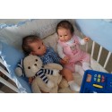 Wenn Du willst kannst Du auch noch ein echtes Babygebrabbel oder Weinen mit bestellen. Das baut die Anette dann bei mir ein. Und wenn Du drauf drückst hörst Du mich brabbeln oder weinen. Die Stimmen sind übrigens von unserem echten Baby aufgenommen.