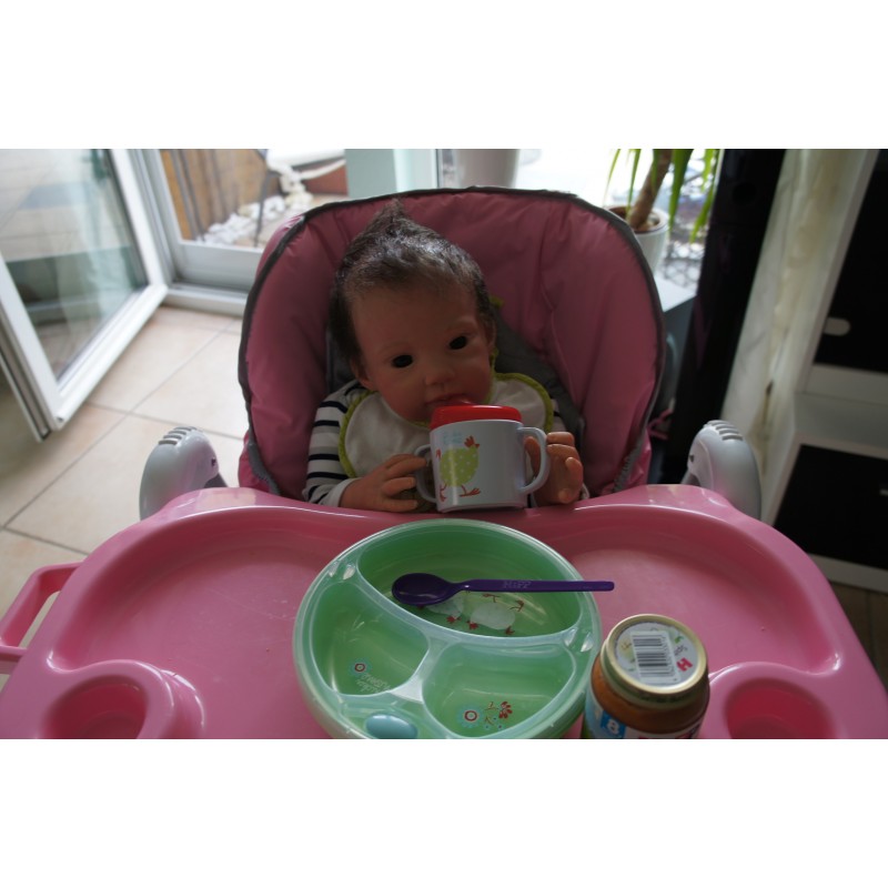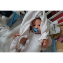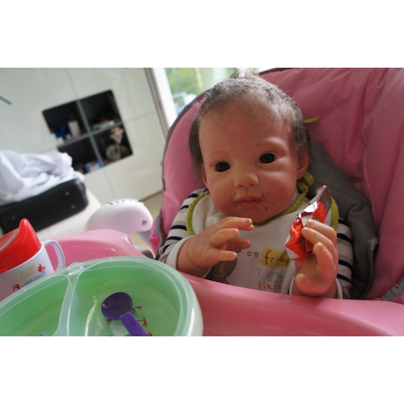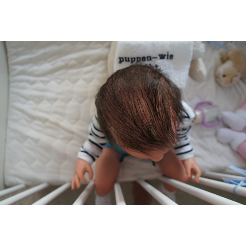 Meine Haare sind dunkelbraun und im micro Rooting Verfahren einzeln eingepflanzt (Feinstes Mohair ). Anschließend natürlich von innen versiegelt. Und nun kann man meine Haare kämmen und auch mal leicht waschen. Die passenden Wimpern habe ich auch dazu gerootet bekommen, das sieht jetzt richtig echt aus. Meine Finger- und Fußnägel wurden fein Pedi- und Manikürt und anschließend dauerhaft versiegelt. Zum Schluss bekam ich noch einen Magnetschnuller. Und ein Duftöl aufgetragen, jetzt riech ich auch noch wie ein echtes Baby.