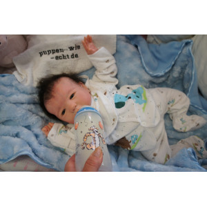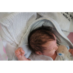 Meine Haare sind dunkelbraun und im micro Rooting Verfahren einzeln eingepflanzt (Feinstes Mohair ). Anschließend natürlich von innen versiegelt. Und nun kann man meine Haare kämmen und auch mal leicht waschen. Die passenden Wimpern habe ich auch dazu gerootet bekommen, das sieht jetzt richtig echt aus. Meine Finger- und Fußnägel wurden fein Pedi- und Manikürt und anschließend dauerhaft versiegelt. Zum Schluss bekam ich noch einen Magnetschnuller. Und ein Duftöl aufgetragen, jetzt riech ich auch noch wie ein echtes Baby.