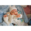 Ich habe weiche lange Arme und Beine und einen weichen Scheibengelenkkörper. So kann ich jetzt jede Babyposition einnehmen und mich gut an Dich herankuscheln. Außerdem kann ich im Sommer kurze Kleidung tragen. Die Arme und Beine sind realistisch gefüllt und mein Körper und Köpfchen wurden mit ungiftigen Materialien gewichtet. Meine Beine und Arme lassen sich dank den gelenken im Körper perfekt bewegen.