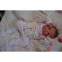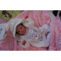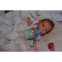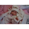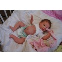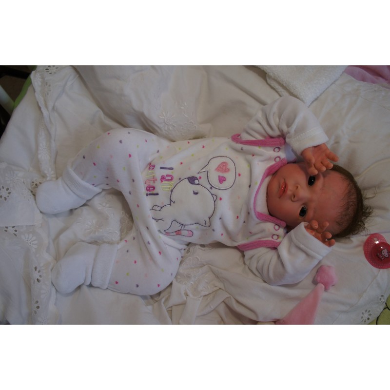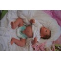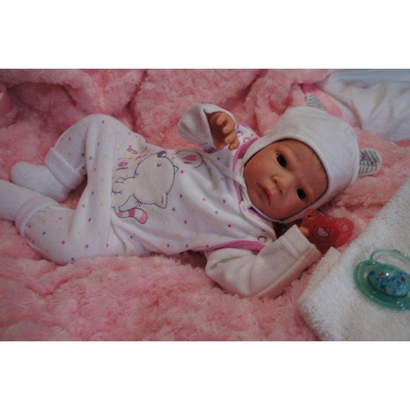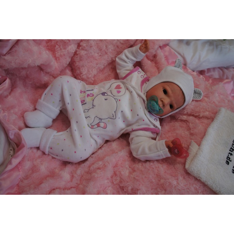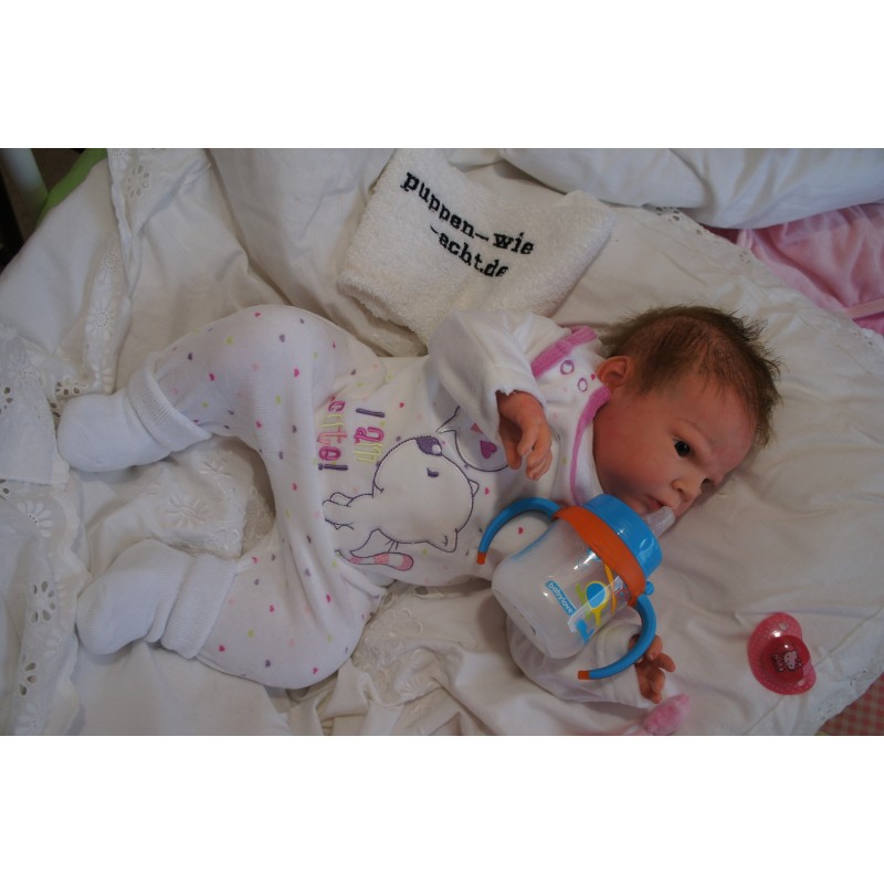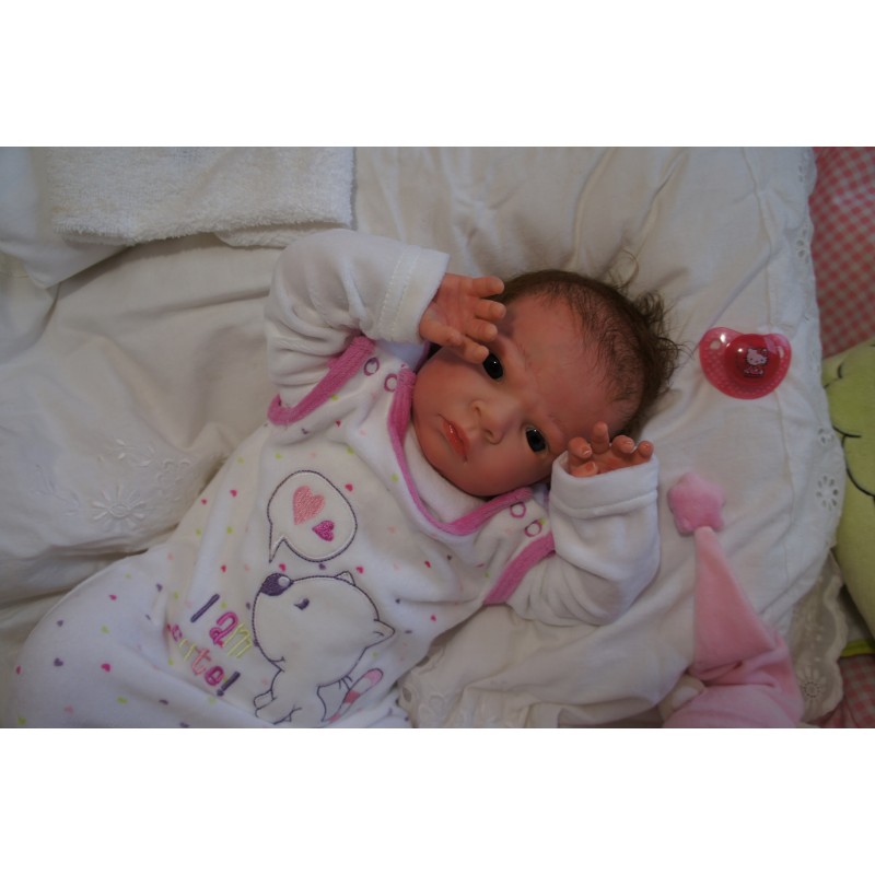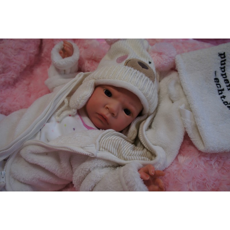 Ich wurde mit hochwertigen Farben in Real Effekt Technik eingefärbt. Mit Genesis Farben habe ich dieses alles noch mal zum Schluss gut versiegelt und eingebrannt. Diese wurde in mehreren Schichten aufgetragen, sodass ein sehr realistisches Hautbild entstanden ist. (Wisch- und Wasserfest kein Abblättern mgl). Feinste Schattierungen und leichte Betonung der Speckfalten wurden bei mir auch nicht vergessen. Leichte Äderchen an Händen, Armen, Füßchen, Beinen, Ohren, Kopf und Gesicht lassen mich wie ein echtes Baby aussehen. Jedes Fältchen an mir wurde einzeln betont. Zarte Augenbrauen wurden mir auch gegeben. Meine Nase wurde geöffnet und hinterlegt, sodass ich jetzt auch gut Luft bekomme. Auch zarte Befeuchtung der Augen, Mund und Nase lassen mich noch echter wirken.