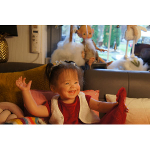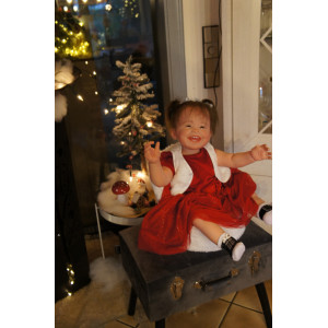 Ich habe weiche lange Arme an einem Halbtorso mit Kugelgelenken und lange Beine an einen weichen Scheibengelenkkörper. So kann ich jetzt jede Babyposition einnehmen und mich gut an Dich herankuscheln. Außerdem kann ich im Sommer kurze Kleidung tragen. Die Arme und Beine sind realistisch gefüllt und mein Körper und Köpfchen wurden mit ungiftigen Materialien gewichtet. Meine Beine und Arme lassen sich dank den gelenken im Körper perfekt bewegen.