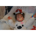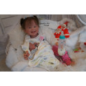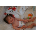 Ich wurde mit hochwertigen Farben in Real Effekt Technik eingefärbt. Mit Genesis Farben habe ich dieses alles noch mal zum Schluss gut versiegelt und eingebrannt. Diese wurde in mehreren Schichten aufgetragen, sodass ein sehr realistisches Hautbild entstanden ist. (Wisch- und Wasserfest kein Abblättern mgl). Feinste Schattierungen und leichte Betonung der Speckfalten wurden bei mir auch nicht vergessen. Leichte Äderchen an Händen, Armen, Füßchen, Beinen, Ohren, Kopf und Gesicht lassen mich wie ein echtes Baby aussehen. Jedes Fältchen an mir wurde einzeln betont. Zarte Augenbrauen wurden mir auch gegeben. Meine Nase wurde geöffnet und hinterlegt, sodass ich jetzt auch gut Luft bekomme. Auch zarte Befeuchtung der Augen, Mund und Nase lassen mich noch echter wirken.