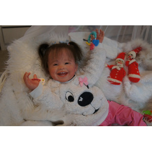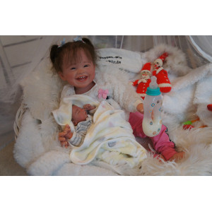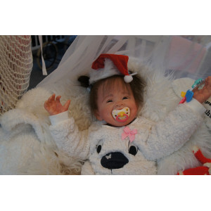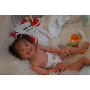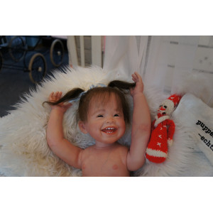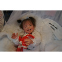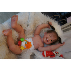 Meine Haare sind mediumbraun und im micro Rooting Verfahren einzeln eingepflanzt (Feinstes High Quality Mohair ). Anschließend natürlich von innen versiegelt. Und nun kann man meine Haare kämmen und auch mal leicht waschen. Die passenden Wimpern habe ich auch dazu gerootet bekommen, das sieht jetzt richtig echt aus. Meine Finger- und Fußnägel wurden fein Pedi- und Manikürt und anschließend dauerhaft versiegelt. Zum Schluss bekam ich noch einen Magnetschnuller. Und ein Duftöl aufgetragen, jetzt riech ich auch noch wie ein echtes Baby.